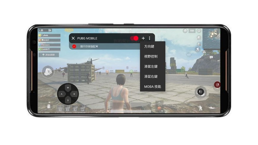 鍵盤滑鼠的部份最大的重點就是 ROG Phone II 也提供了映射的功能,可以將鍵盤按鍵、滑鼠模擬螢幕觸控操作的對應位置。鍵盤滑鼠吃雞不是夢想!