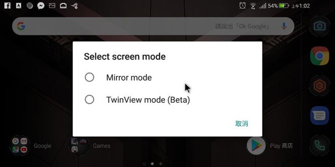 裝上雙螢幕基座之後 ROG Phone II 後就直接升級為『雙螢幕』,就像是雙螢幕的遊戲掌機一般,上下螢幕可以完全分離執行不同應用軟體,例如一邊玩遊戲一般開 FB 、傳 ine,甚至是同時開啟兩個遊戲都不是不行。
