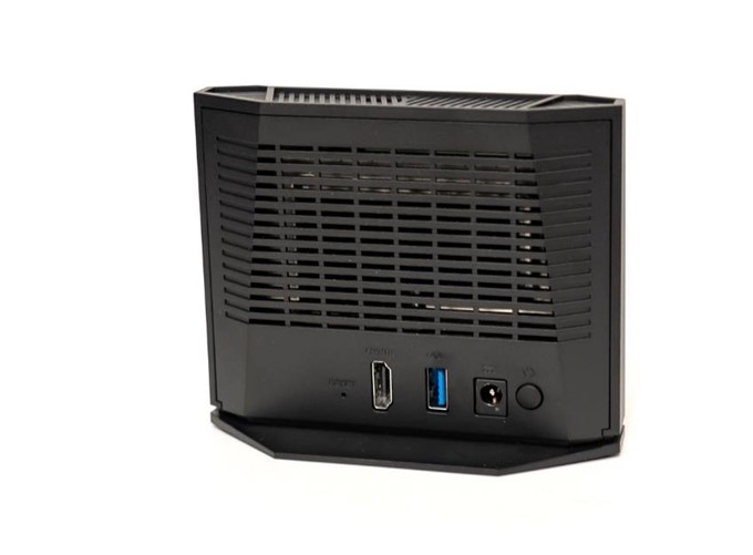 輸出入部份提供超完整的擴充功能,桌上型遊戲基座後方具備了 3.5 mm 麥克風孔、 3.5 耳機和 S/PDIF 數位輸出、 HDMI 與 DispayPort 影像輸出、 Gigabit LAN RJ45 有線網路、四個 USB 3.1 孔與 Type-C 電源輸入孔。