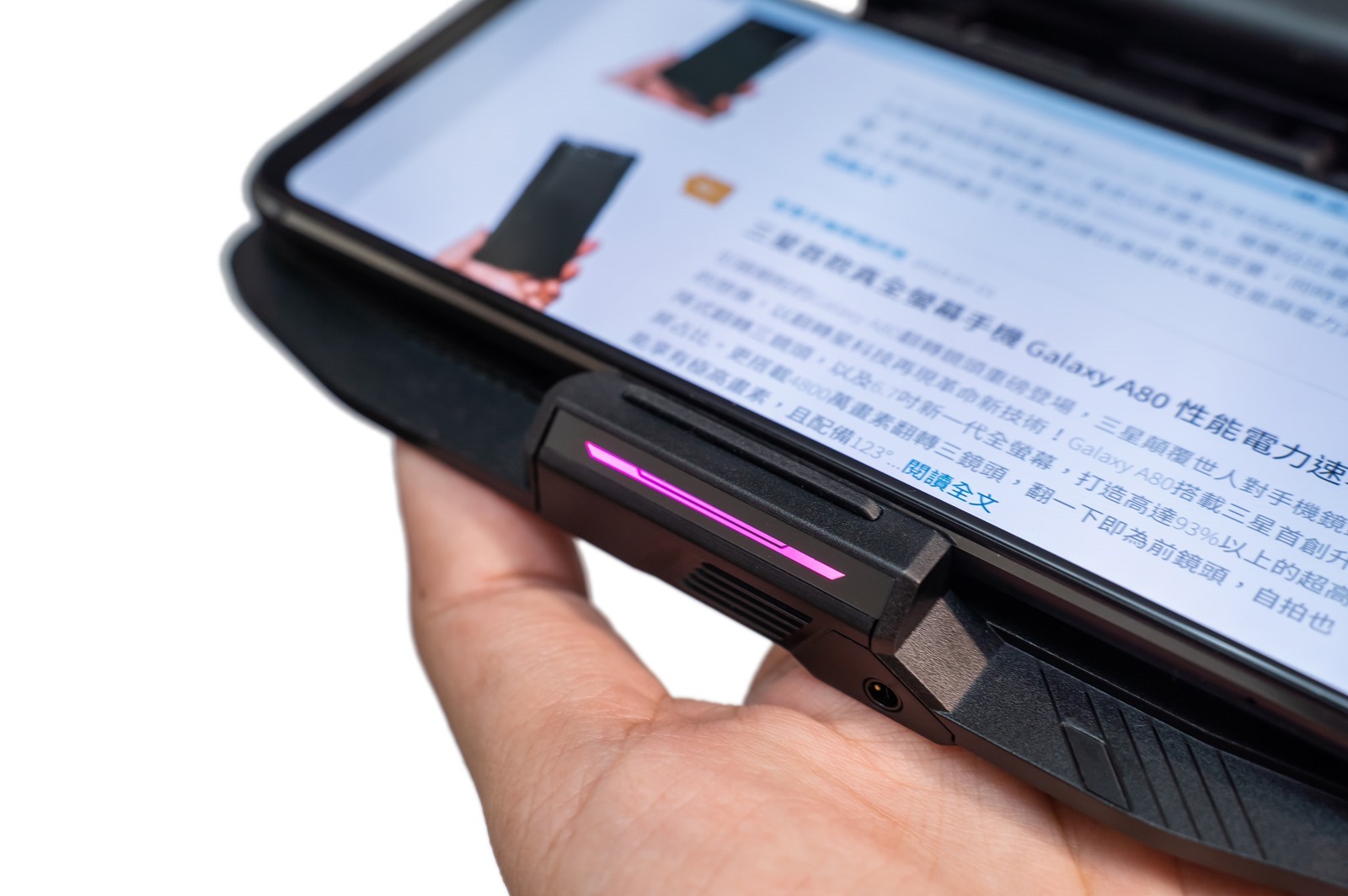 手機直接安裝的方式需要配合這個專用的框架,可以看作是門連接手把使用的保護殼,透過 USB C 與 ROG Phone II 本體連接。
