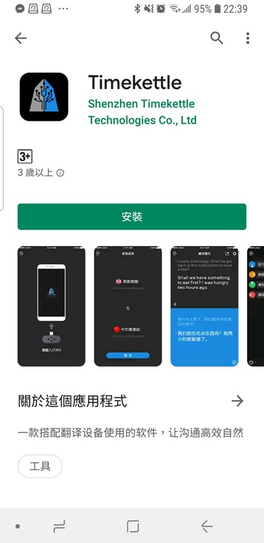 其實剛剛提到 ZERO 多功能翻譯機必須要接在手機上的時候,應該就有聰明的讀者猜到「是不是要裝 APP?」沒錯! ZERO 多功能翻譯機的本體,說穿了就是一個「可以四方向收音的指向性麥克風」,而其完整的功能則必須要在手機上安裝了官方的 APP 之後才能完全的開啟。所以,我們先到 Google Play 搜尋「Timekettle」來進行安裝。