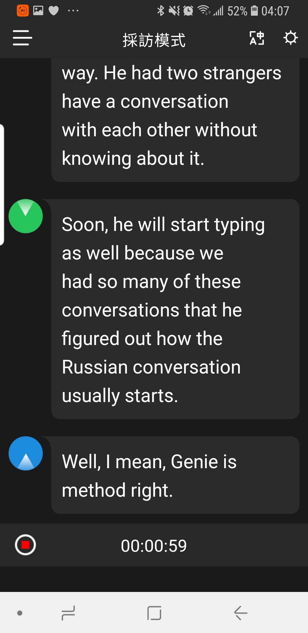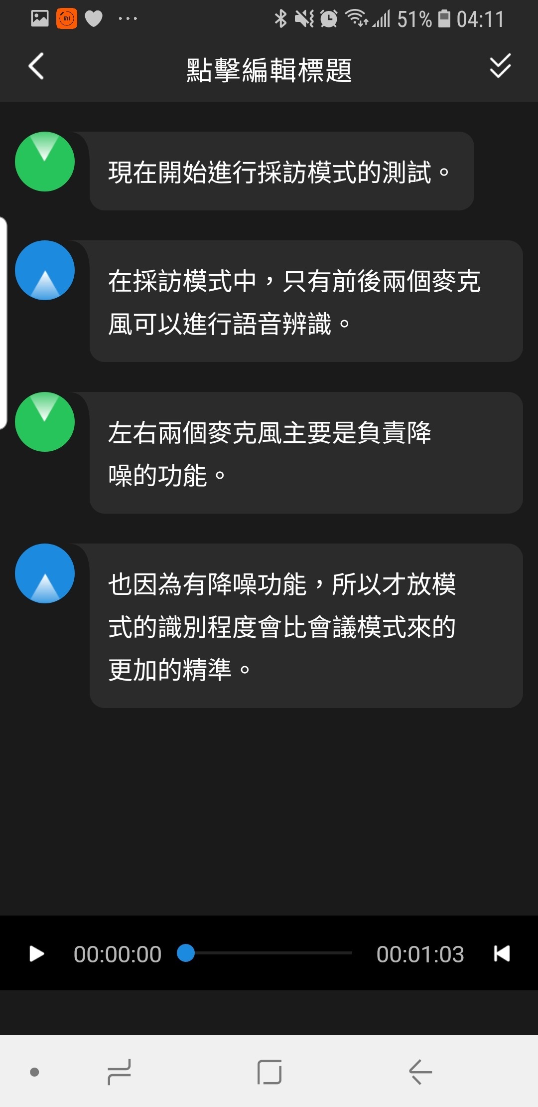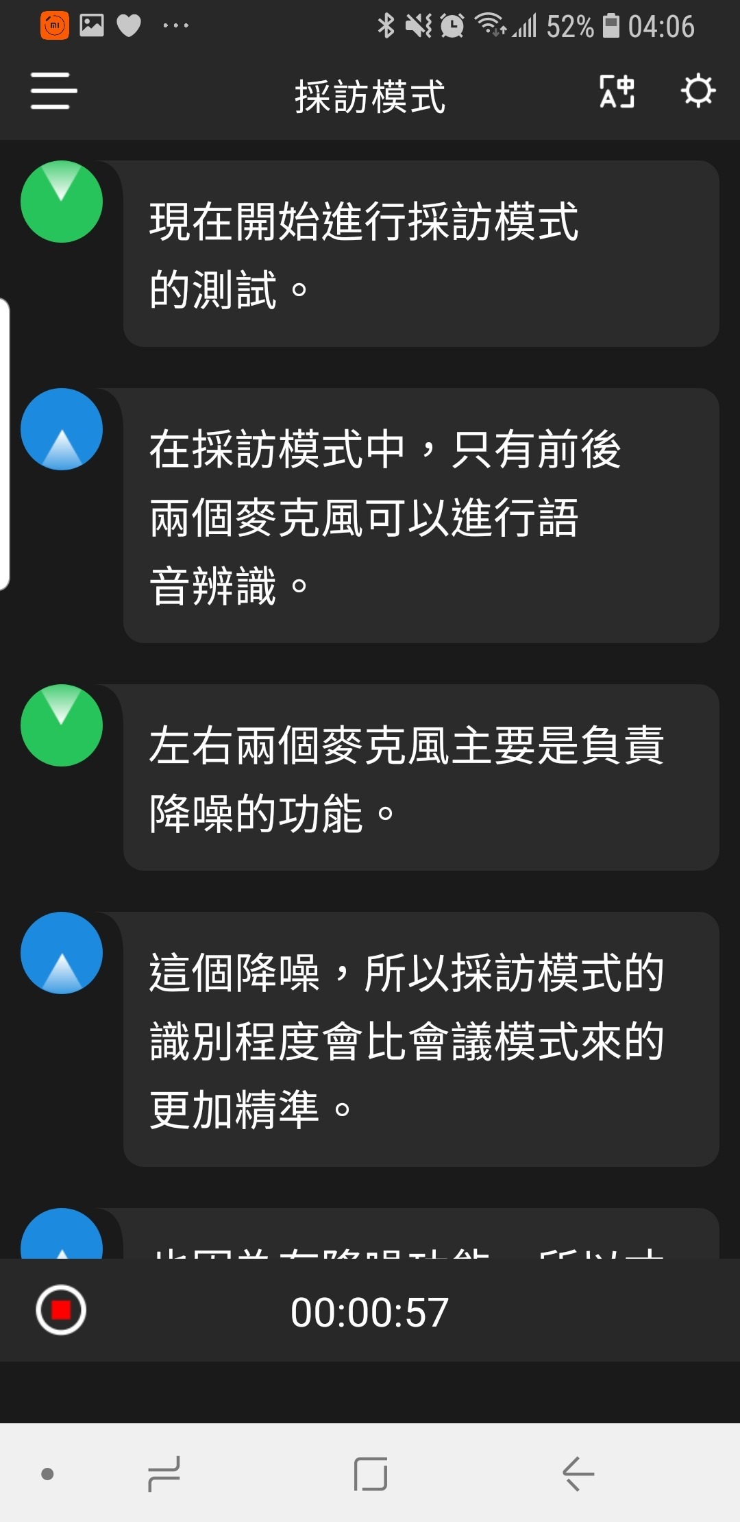 當你確定開始錄音後,大家只要依序開始說話就可以了,這時候你就可以看到 ZERO 多功能翻譯機開始把大家的說話內容給轉寫出來,可以說是相當方便的功能。要不然每次開會都要做一堆聽打文字記錄,這樣很容易搞死人的。