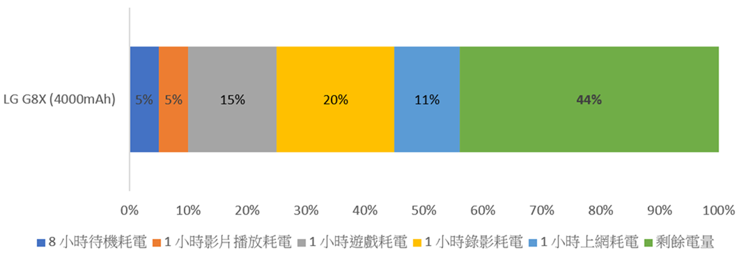 - G8X 瀏覽器連續讀取瀏覽 1 小時,實際消耗 11% 電量,剩餘 44% 電量