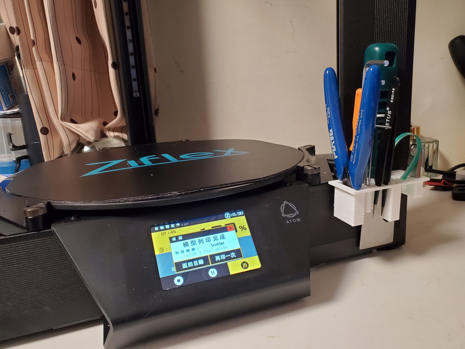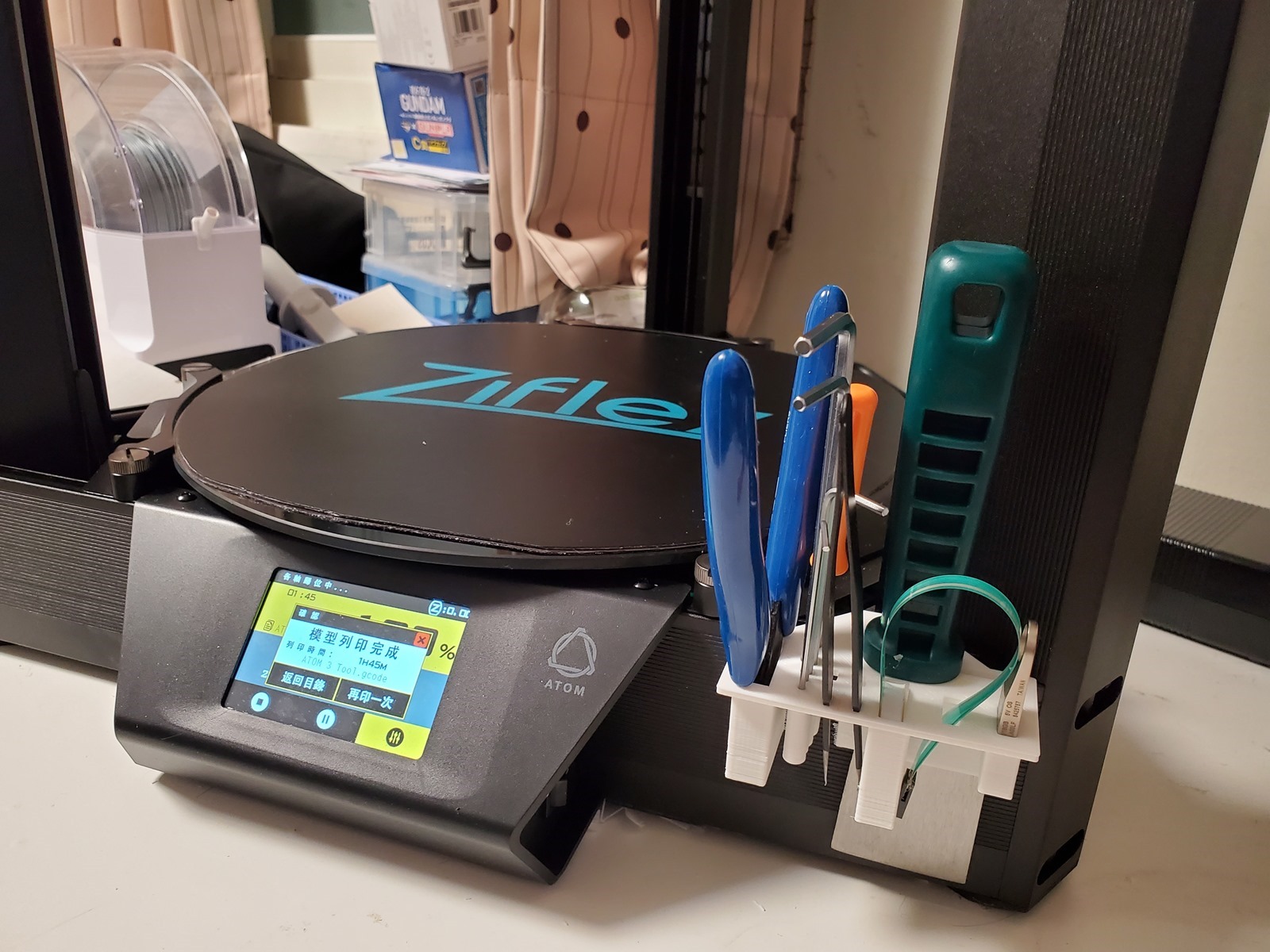 簡單做了一個 ATOM 3 / 3 Lite 的工具收納架,直接扣在 ATOM 3 螢幕面板旁即可,如果要更穩固可以在內側用 3M 無痕膠條固定,基本上內附的工具一直到調平開關都可以放在這個工具架上。