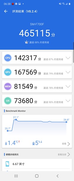 Galaxy Z Flip 採用 S855+處理器與 8GB 內建記憶體的規格配置,更多資料也可以阿輝資料庫 https://reurl.cc/MxdjK ,資料庫中包含超過 200 支以上以上阿輝多年測試的實測數據,可以給大家作為對照參考使用。