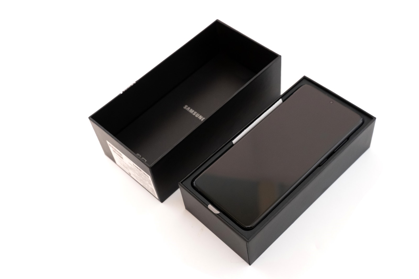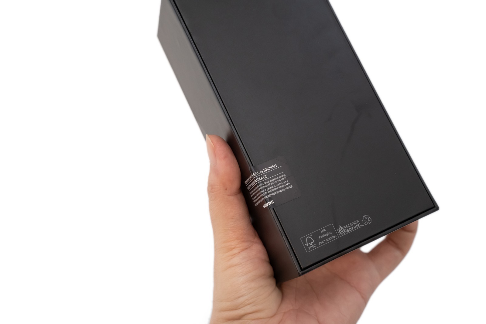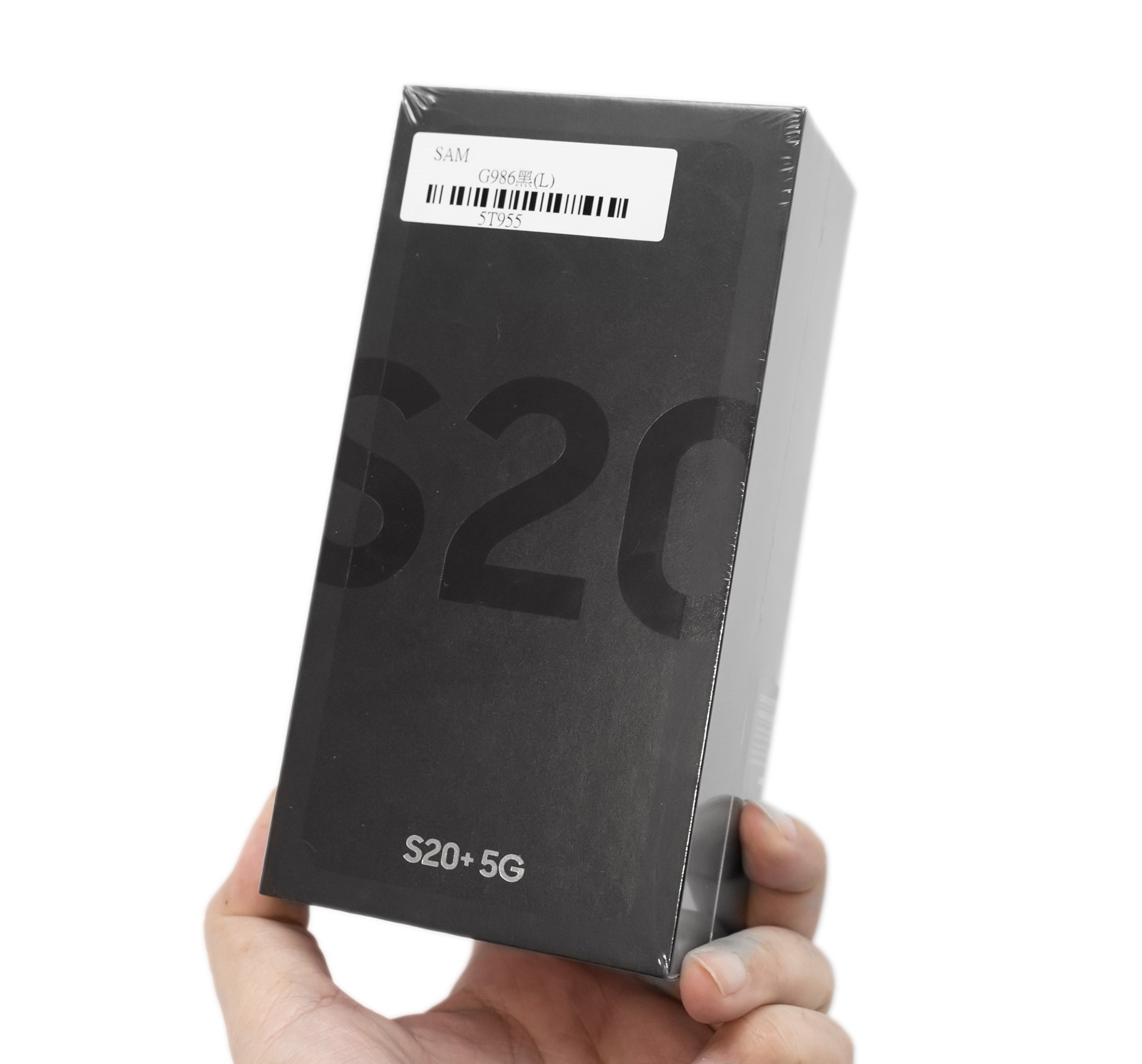 這一次 Galaxy S20 + 一共有晴空白、晴空藍、星空黑、星空灰四色,阿輝入手的是其『星空黑』版本,一個小細節是外盒上印上的機型字其實就和機器的顏色為同樣的色彩設計!(對,全新連膠膜都還沒有撕的新機開箱)