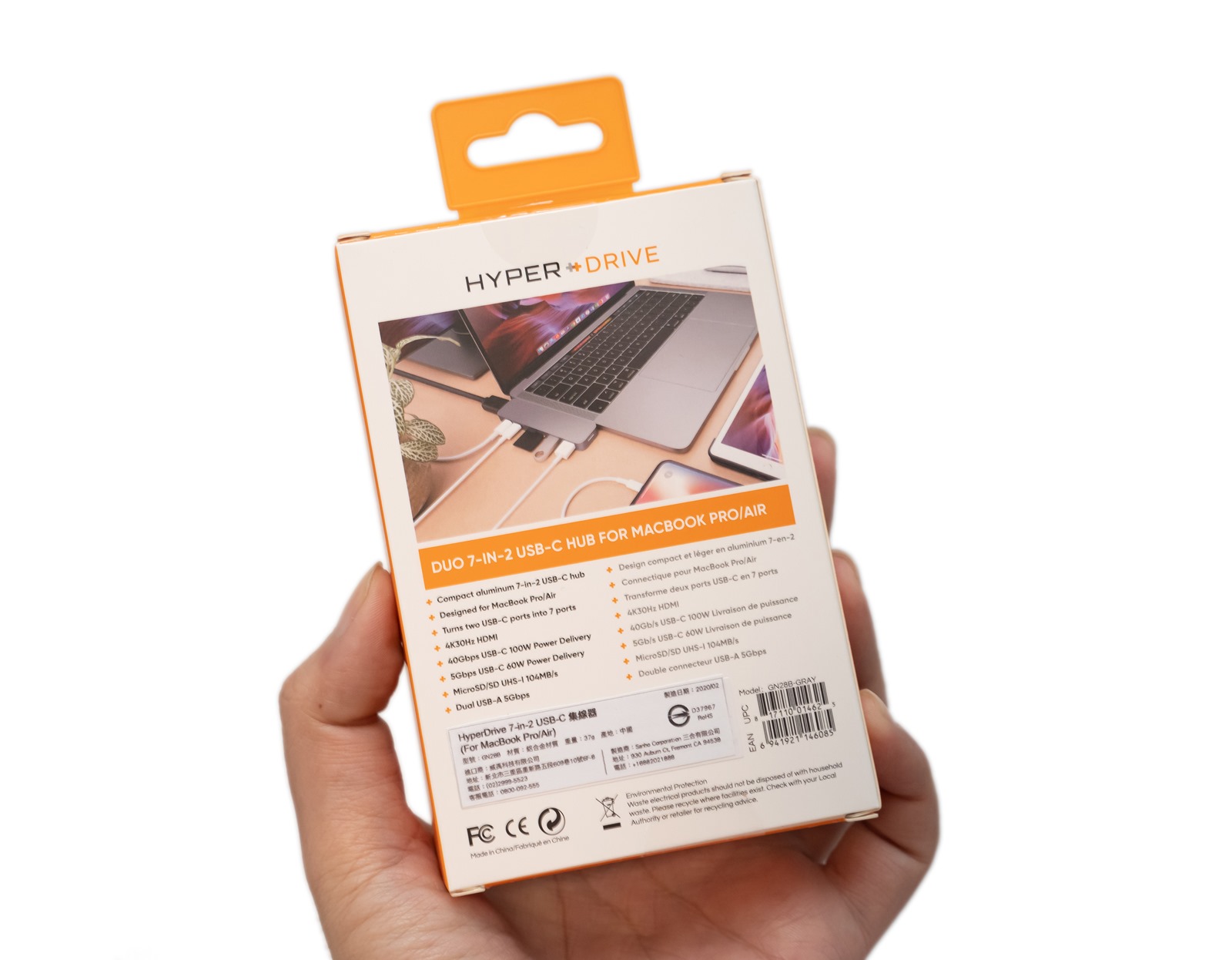 HyperDrive 7-in-2 USB-C Hub 的外盒簡約清晰,阿輝同時也入手了 HyperDrive 另一款 6-in-1 for iPad Pro 的產品,兩款姊妹產品自然設計風格非常接近,而在盒身上也清楚寫明不同款式的不同規格。