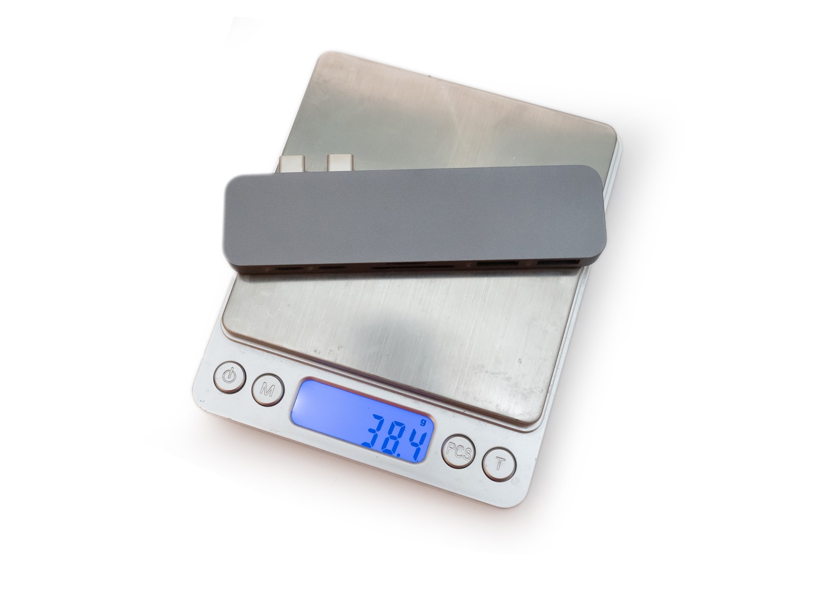 而且它非常輕,只有 40G 不到,就算每天都跟電腦一起帶著,也不會增加任何額外負擔,30 幾克完全是一個人類無感的重量,不管有沒有拿著它重量感都沒差但是實用度超、級、有、差。