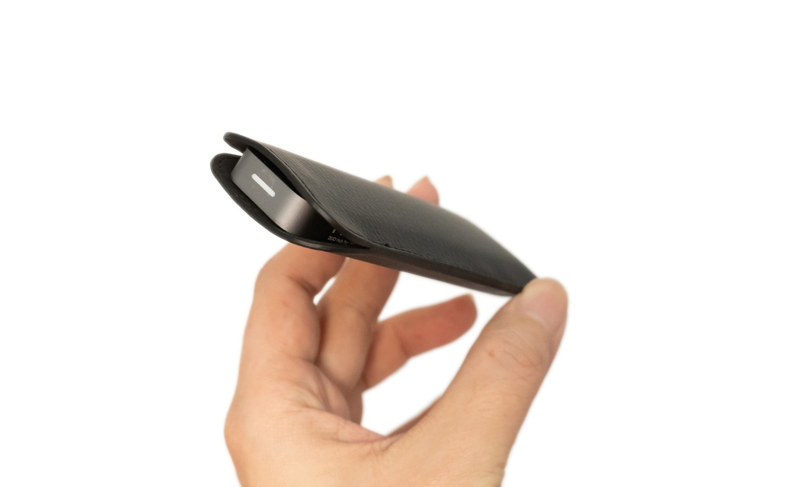 原廠貼心在盒裝內直接附上原廠皮套,相當有質感,黑色霧面的皮革設計手感絕佳,拿來溫潤舒適,很有人味,與 HyperDrive 7-in-2 USB-C Hub 機身的金屬科技大相逕庭,有一種很優雅的平衡感。