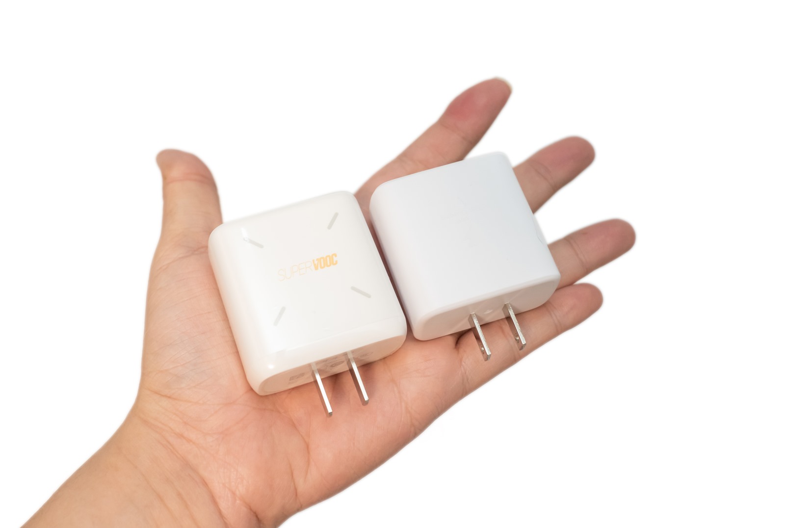 實際上 OPPO Find X2 Pro 內附的 65W 充電器也用上高頻高效的 GaN(氮化鎵)功率零件,使得儘管是 65W 經然的大電量充電器,體積還是控制在一定的程度中,甚至和其他廠牌的 45W 充電器相比大小非常接近。