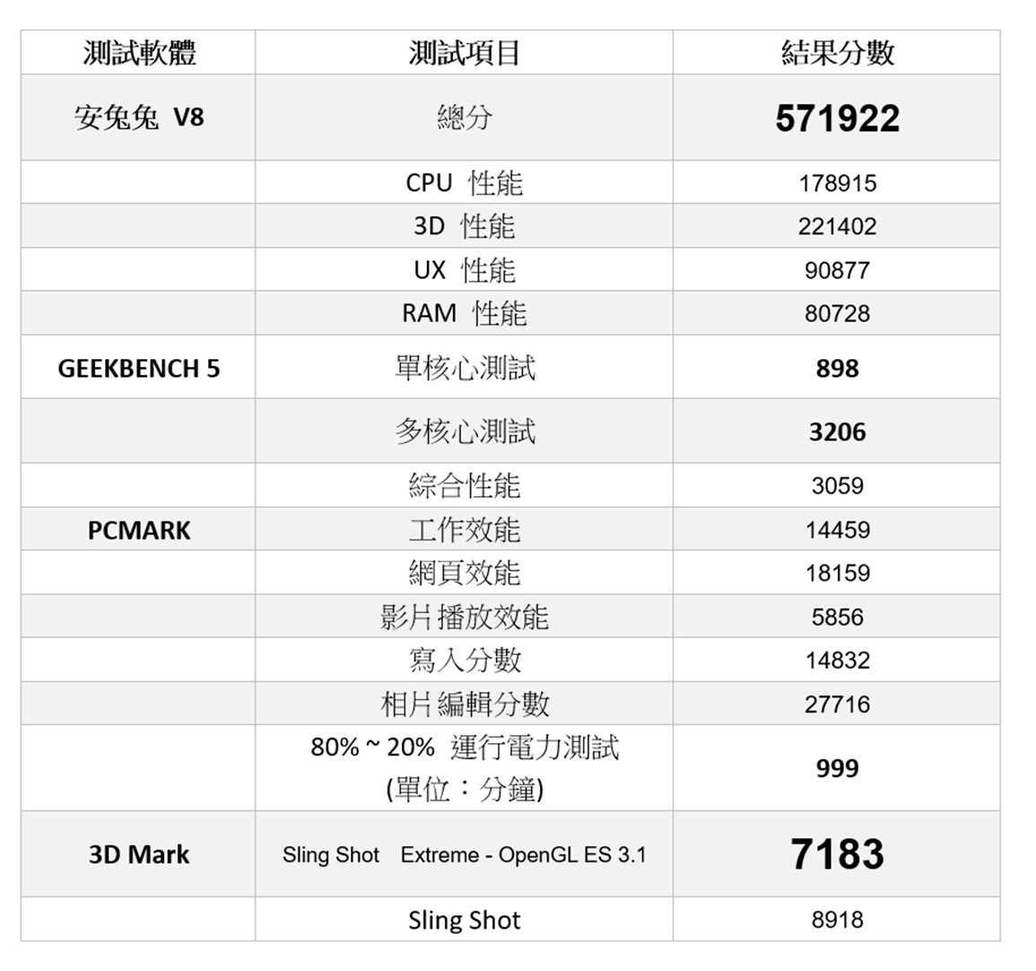 - 解析度 FHD+ 加上 60Hz 螢幕更新率測試結果:16 小時 39 分(999 分鐘)