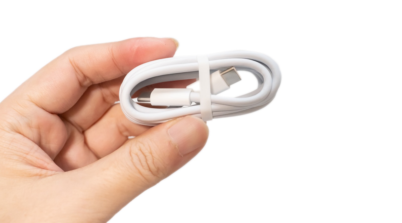隨盒裝內有附贈具有 E-Marker 晶片的 USB C 線材,支援 20V/5A 也就是 100W 充電