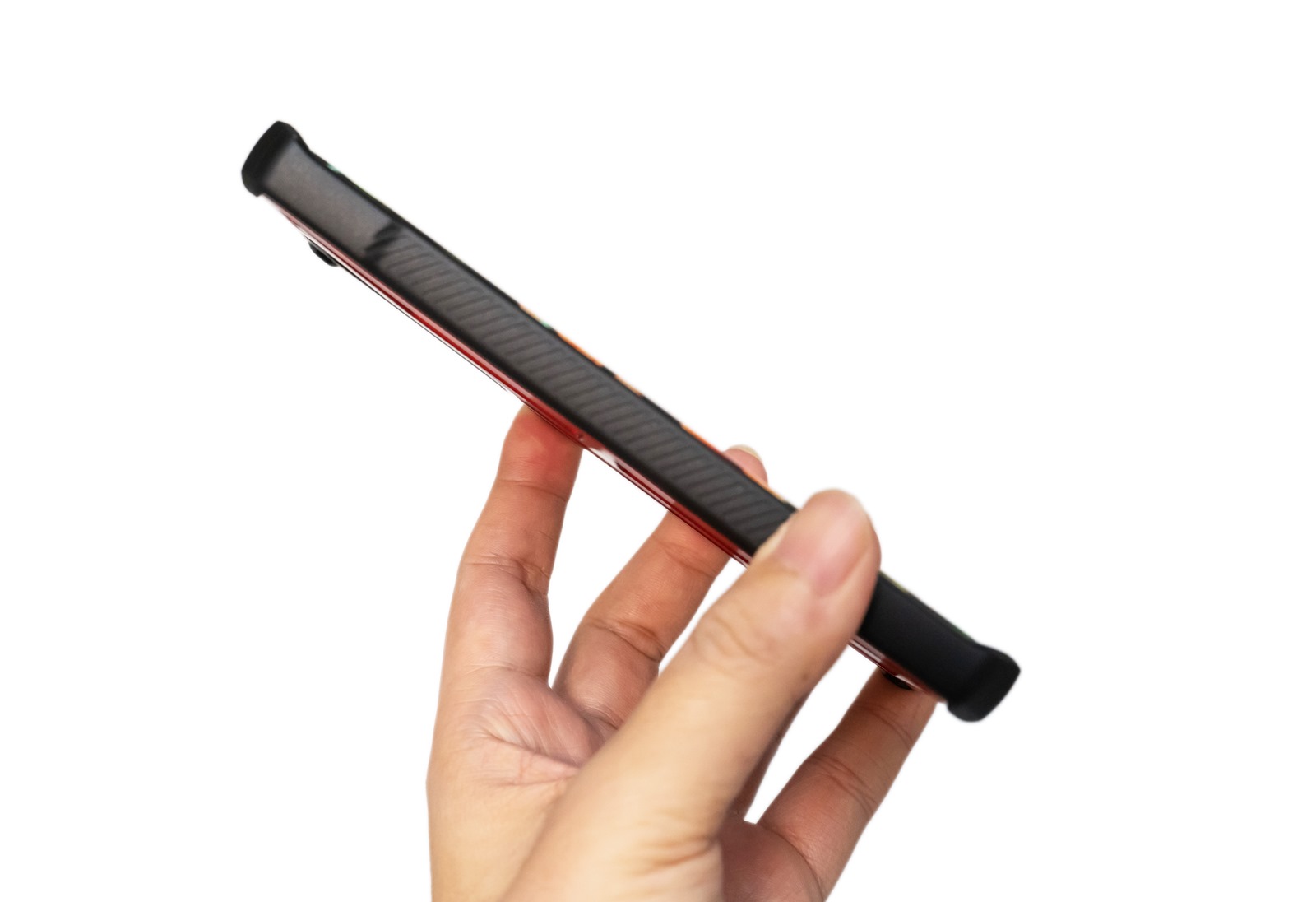 裝到手機看看,運動風的 UAG 保護殼一點都不笨重,外型風格阿輝這一款 MONARCH 是選擇了比較高調的紅黑配色。