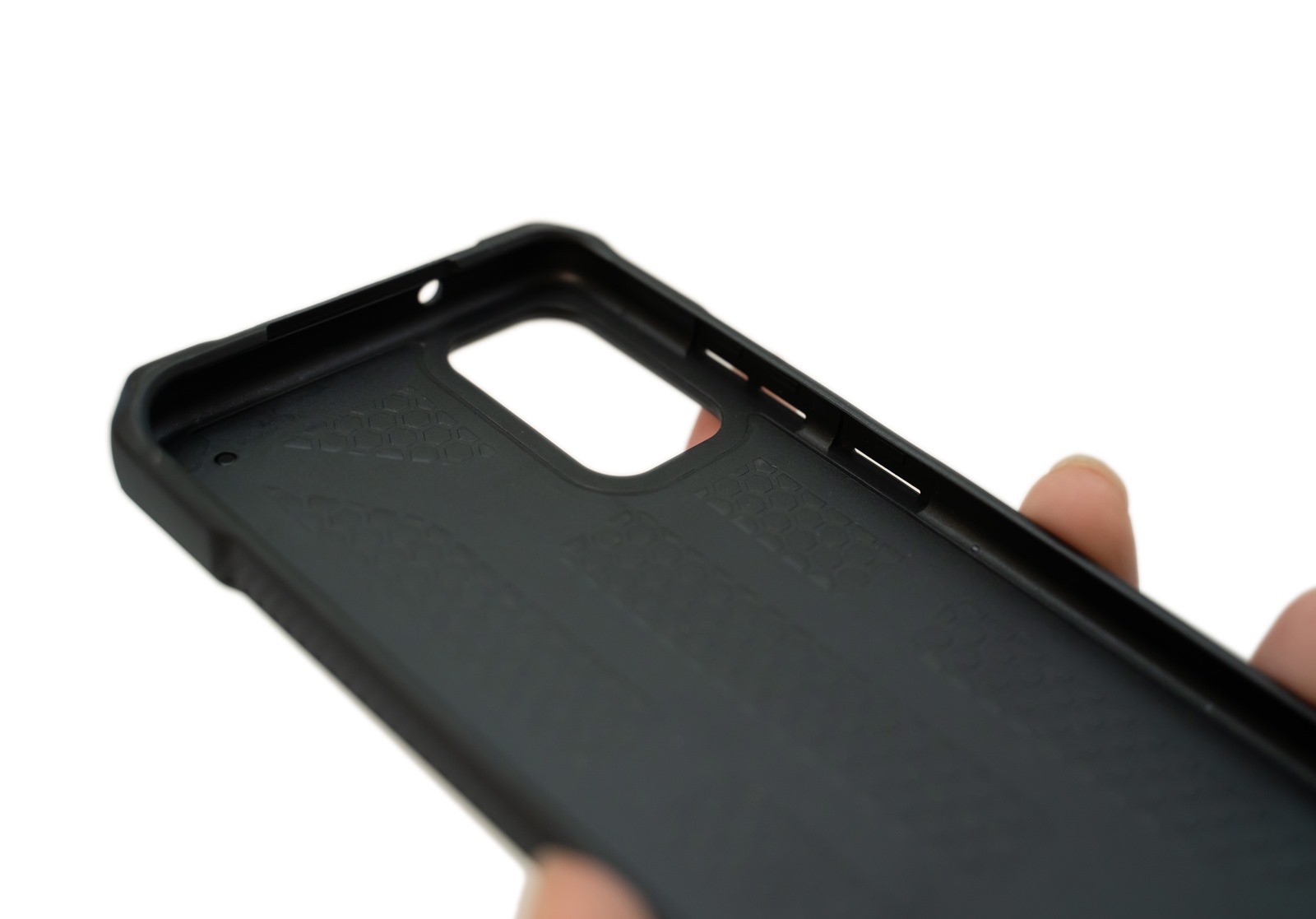 UAG 保護殼在 S20+ 所有的連接埠與按鈕處都採用精準孔位確保操作順利無阻