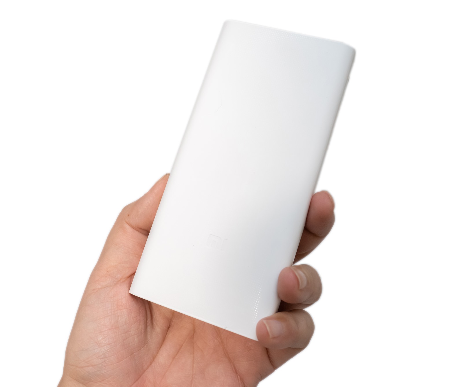 白色的 20000 小米行動電源 3 相片似乎拍不太出來表面有些許點點的印刷增加質感細節,整體握持感算是很舒適,不過畢竟 20000 實在大容量,個頭的確不算小就是了