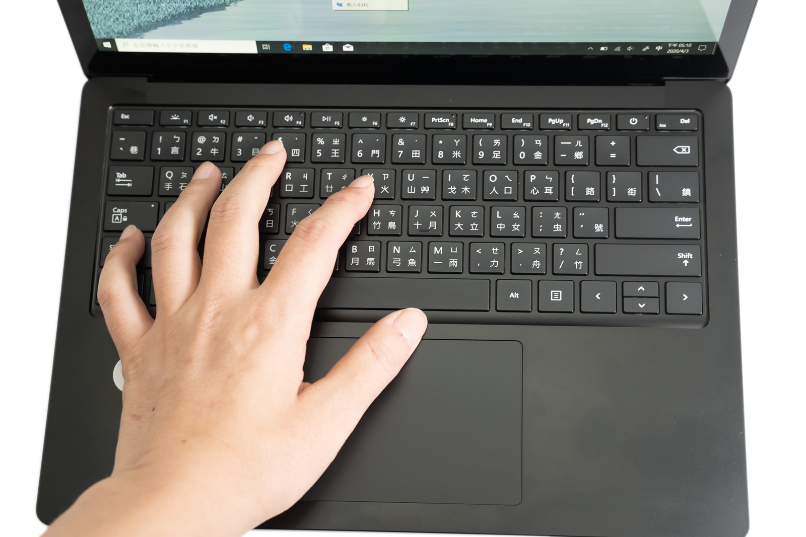 正如前面提過的,阿輝手邊這台 Surface Laptop 3 是金屬 C 面,本來覺得沒有使用麂皮版本拍照給大家看有點可惜,但是金屬質感其實跟機身更有整體性,加上有 LED 背光,即便在昏暗的場所使用,也不用擔心看不到鍵盤上的字。而且鍵盤的觸感還行,即便是慣用機械鍵盤的阿輝,也能習慣於使用 Surface Laptop 3 的鍵盤敲打;筆電與家裡機械鍵盤手感不同是正常的,但有些筆電的薄膜鍵盤會讓阿輝想要另外帶一把鍵盤出門工作,但若是帶 Surface Laptop 3 外出工作,有時為求方便則不會想要再特地外接鍵盤。