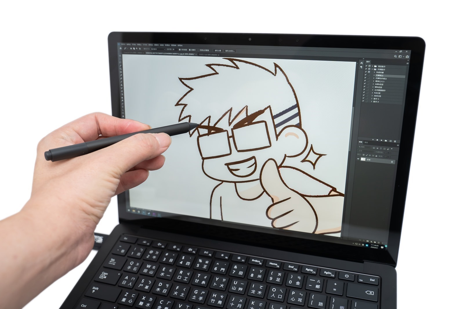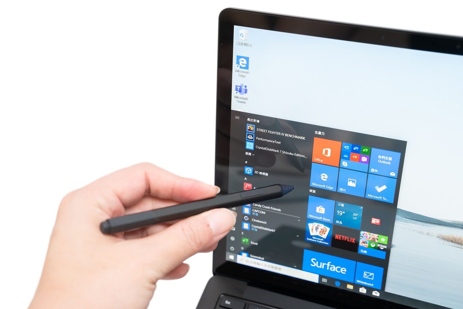 Surface Laptop 3 搭載觸控螢幕,手寫筆不只能寫,當然也可以用來擔任滑鼠的工作,用手寫筆控制觸控螢幕有一種說不出來的爽感,旁人的筆電螢幕只能看,但 Surface Laptop 3 螢幕可以滑好滑滿,立刻感覺優越了起來。