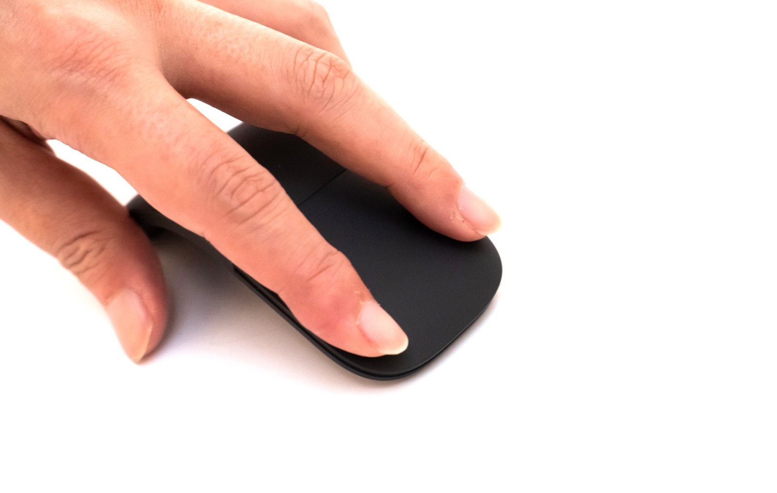 在不使用的時候,Arc Mouse 可以變成完全平放收納,絲毫不占空間,就算跟筆電一起帶著出門也不會造成額外的負擔,不像一般傳統滑鼠都呈現圓形,出門很難攜帶在家也不易收納,大多人都呈現半放棄姿態直接把滑鼠放在桌上,但換成 Arc Mouse 的話,就可以好好的把滑鼠收納起來了。