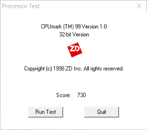 單核心測試的部份 CPU 跑分軟體 CPUmark99 進行測試,成績為 730 分