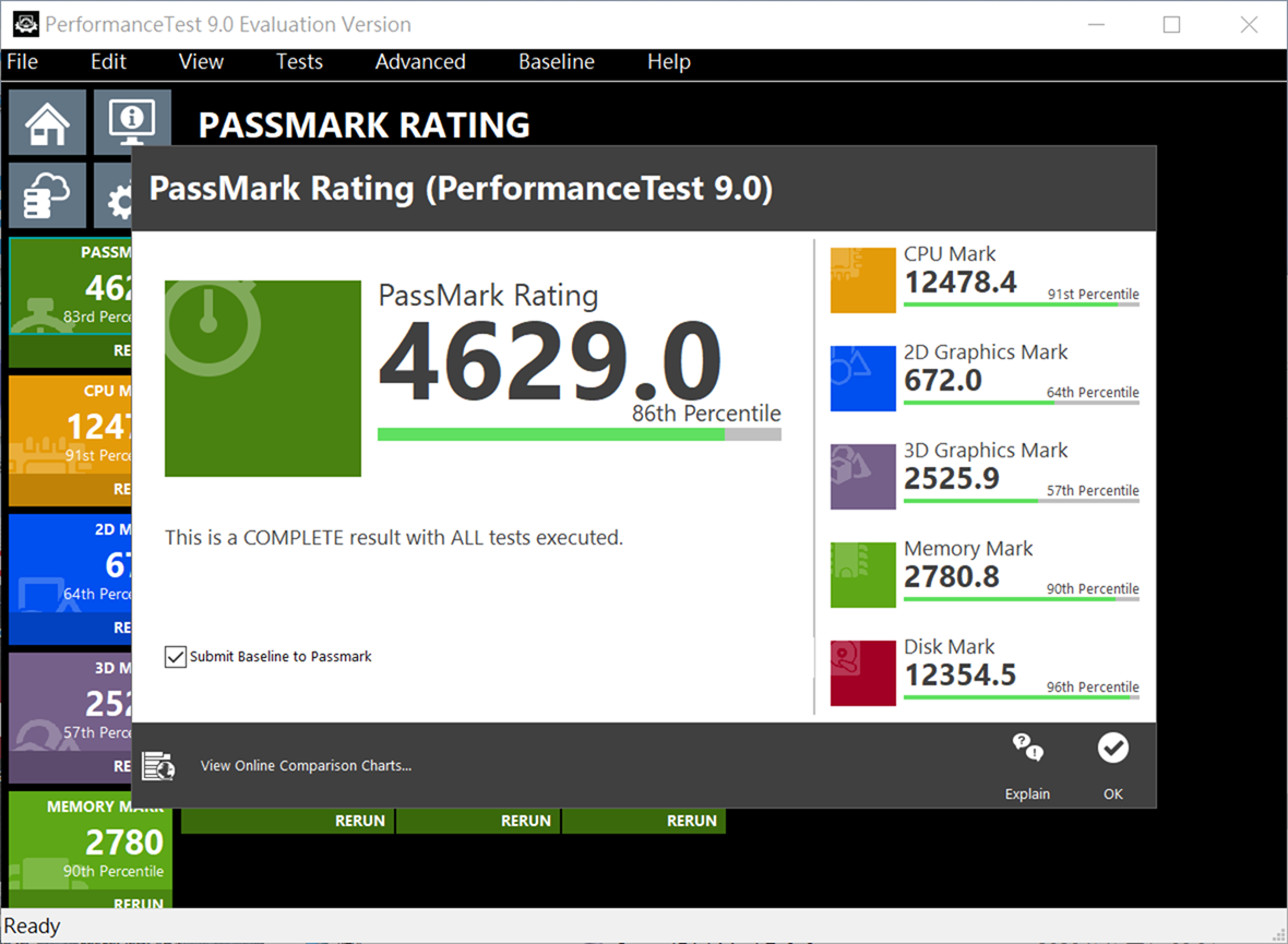 以 PassMark PerformanceTest 9 測試,得分為 4629 分