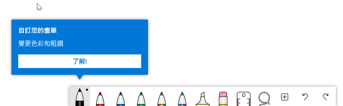白板可以自己決定筆刷類型與粗細,愛用什麼筆就用什麼筆,當然也可以挑選顏色。