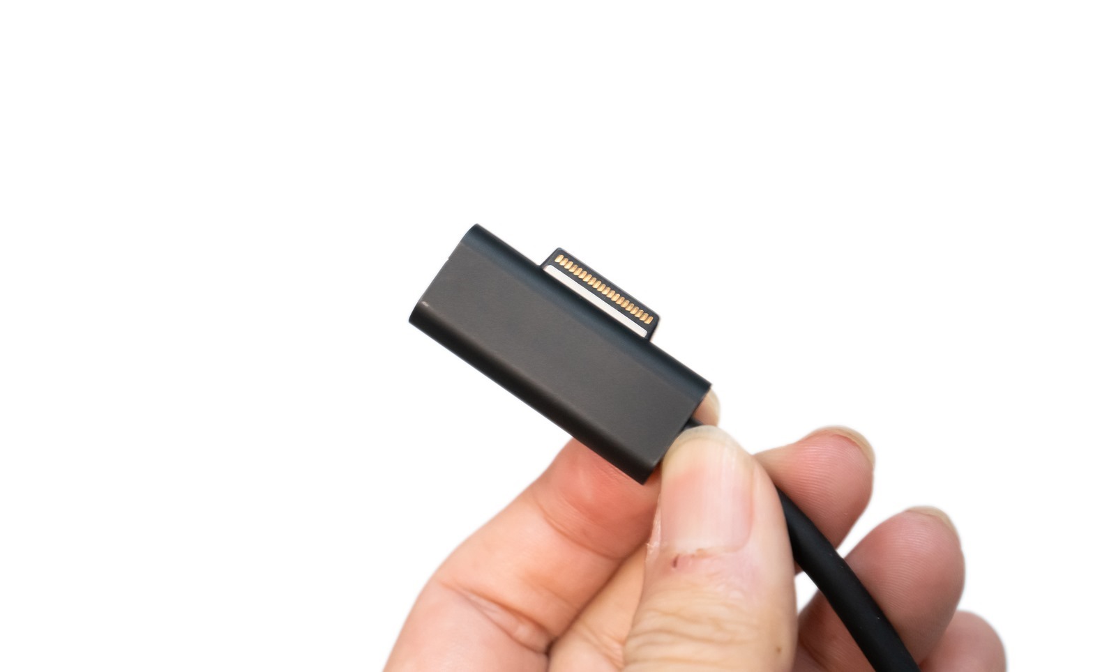 原廠的充電埠特規,基本上只有 Surface Laptop 能用,磁吸的設計相當安全,以往 Mac 也是磁吸充電,阿輝本來對此相當推崇,但不知道為什麼改掉了,幸好 Surface Laptop 3 依舊保留這個優點,就算不小心踢到充電線也不用擔心整台電腦滑落;造型也與筆電相當有一致性,單看充電線也相當優雅細緻。