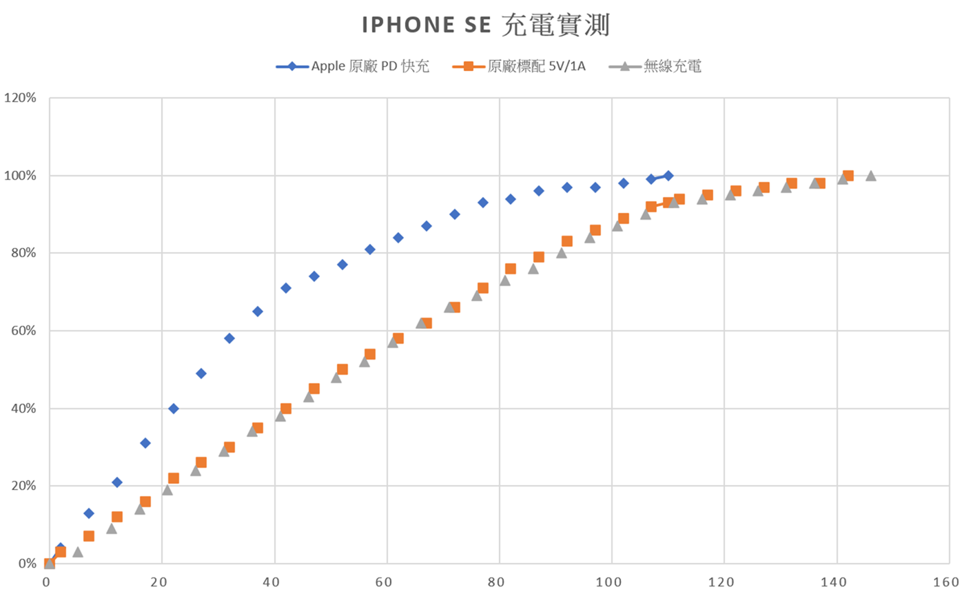 還是補了一下 iPhone SE 2 的充電時間實測,測了一下 12 個小時就過去了(有夠痛苦),並也繪製曲線圖給大家參考