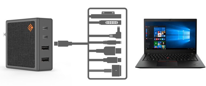 如果您的筆記型電腦沒有 USB C 型電源端口,SlimQ F100 也有準備了 20 多種類型的轉換電纜,幾乎可以與市面上的所有筆記型電腦配合使用,包括 Macbook Pro,Microsoft Surface,Lenovo,Dell,HP,Acer,ASUS 等等