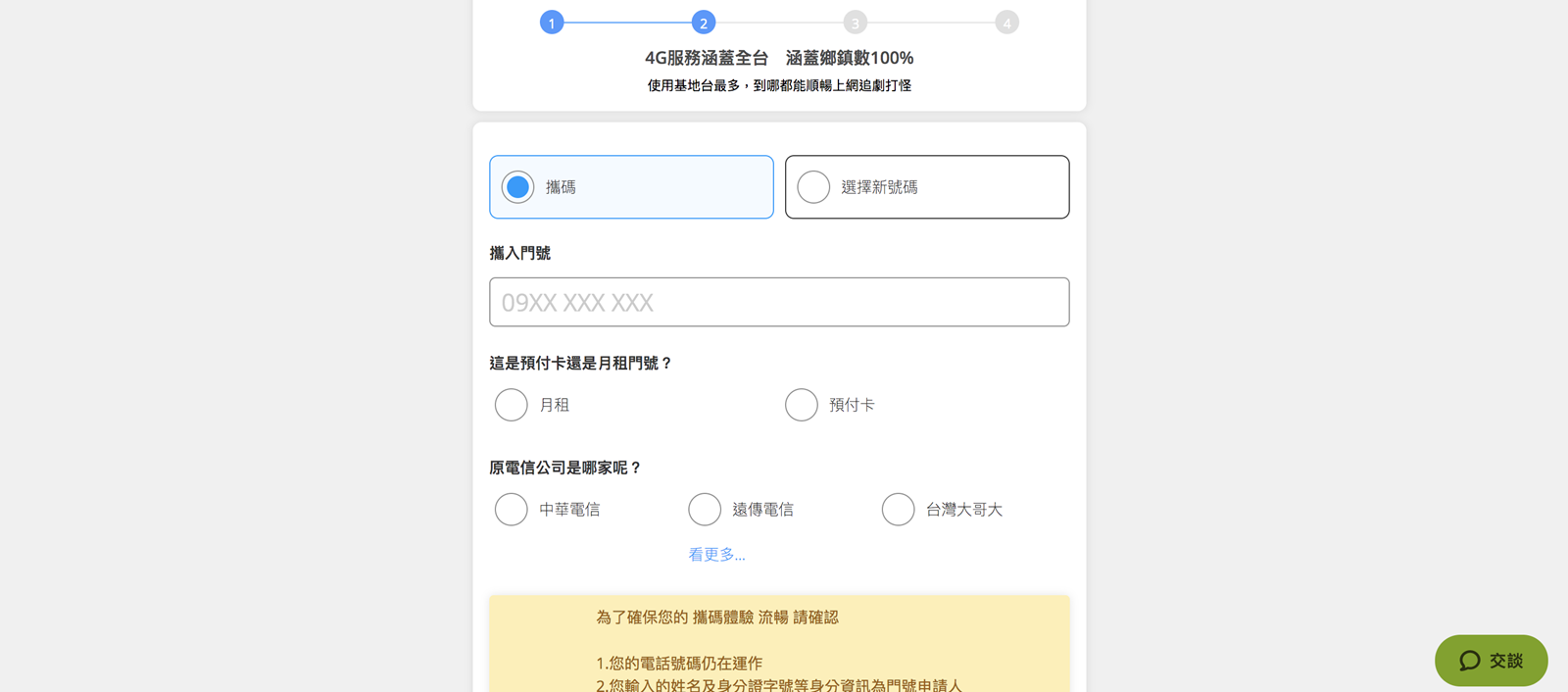 接著就是可以選擇攜碼或是使用新號碼,對隨機的新號碼不滿,還可以再選。