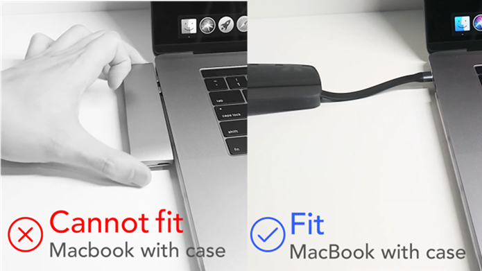 通過 Dock 或 USB-C 插頭的選擇,HybridDrive 可以與任何 Apple MacBook 機型搭配使用(如果您不想卸下保護套的話也沒有問題)。