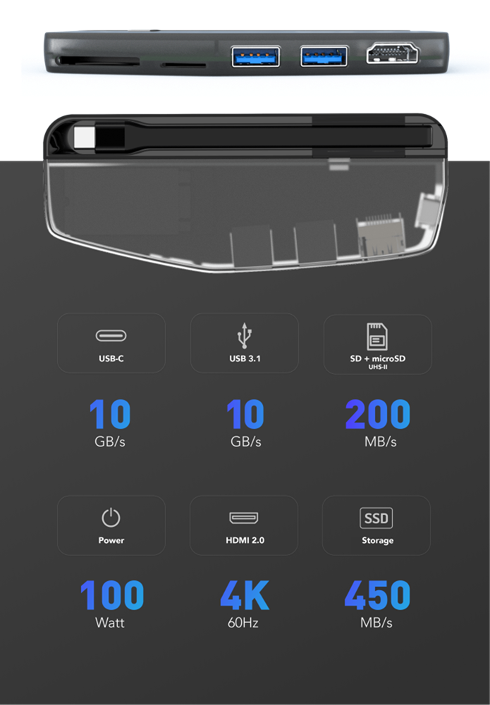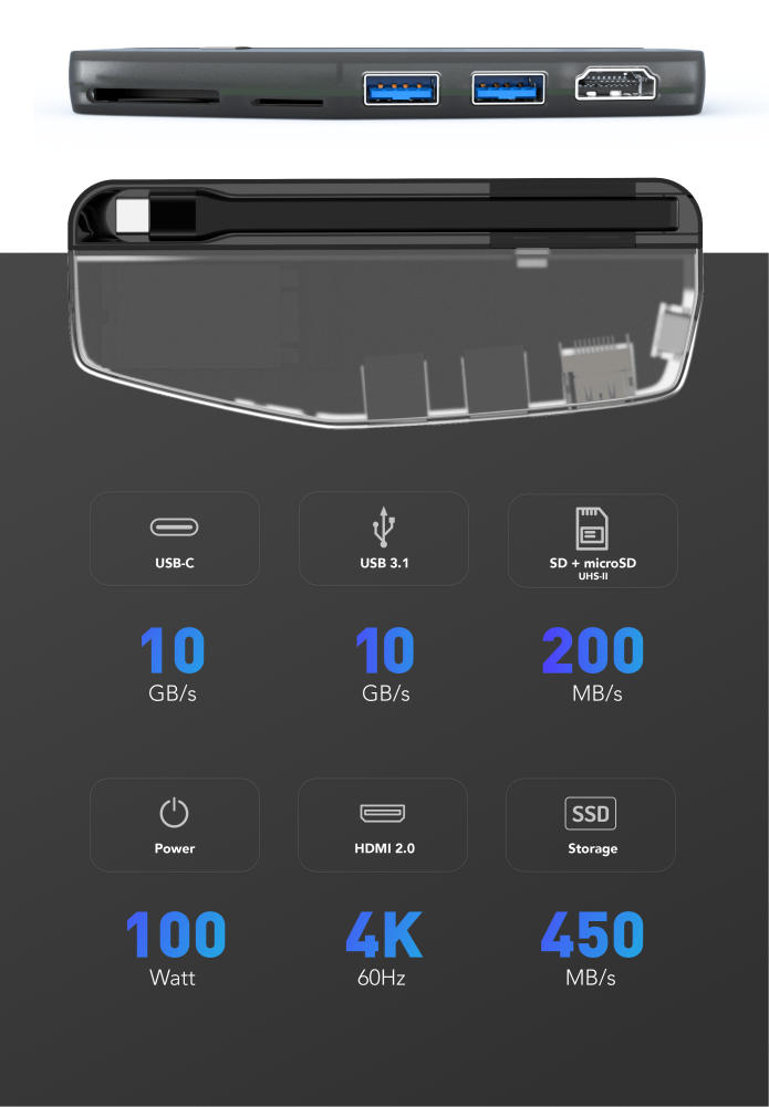 通過最佳化 USB 3.1 接口和 USB-C 接口之間的路徑,HybridDrive 將市場上最快的集線器的數據傳輸速度提高了一倍。