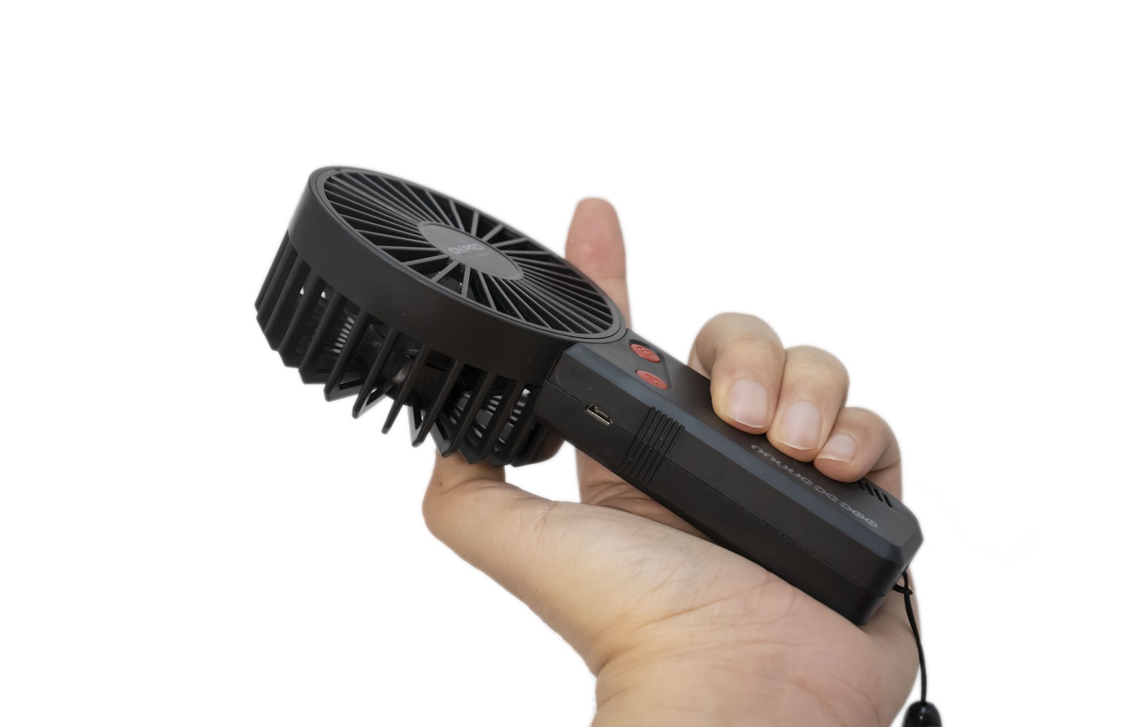 充電孔使用的是 MicroUSB 連接埠,設計在風扇本體的左側,內置 2000mAh 鋰電池,充放電都有安全保護,使用安心度加分。