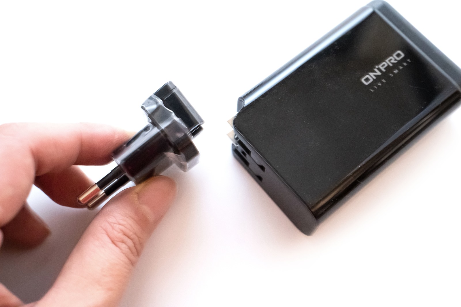 ONPRO UC-PD60W 帶有可折疊插頭和卡扣式國際轉換器的設計,非常靈活;包裝盒內就直接大方的附上了各國的轉換接頭,不用另外購買就可以全球使用,再加上直接採用