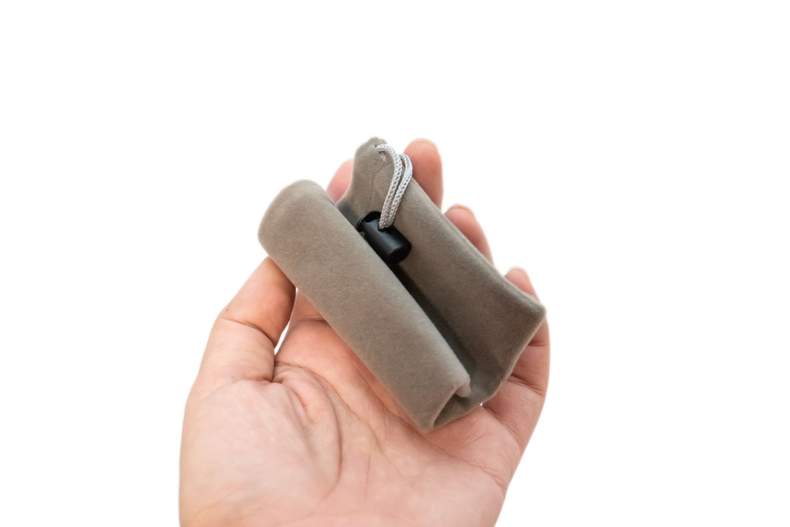 除了多國轉換插座,盒裝內也直接附上絨布材質的收納袋,可以將充電器與轉接頭一起收納方便攜帶。