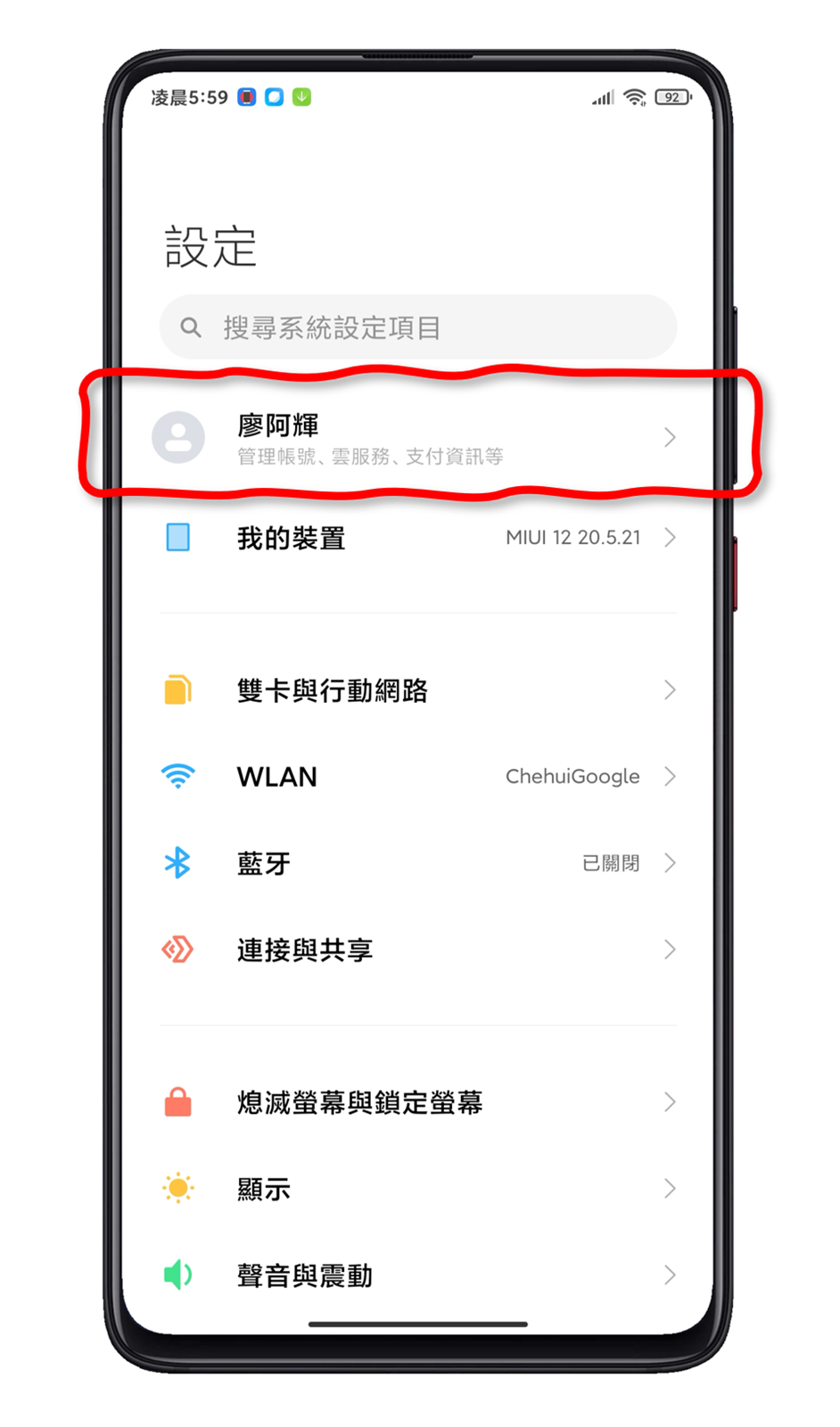 之前超長的 MIUI10 廣告關閉教學應該成為歷史了(笑),現在只要幾個步驟就可以完成,我們打開『設置』或是設定選項頁面,然後找到其中的『帳戶 (帳號) 設定項目』,一般來說應該在最上面就可以看到,如果還沒登入的也要先登入帳號就是了。