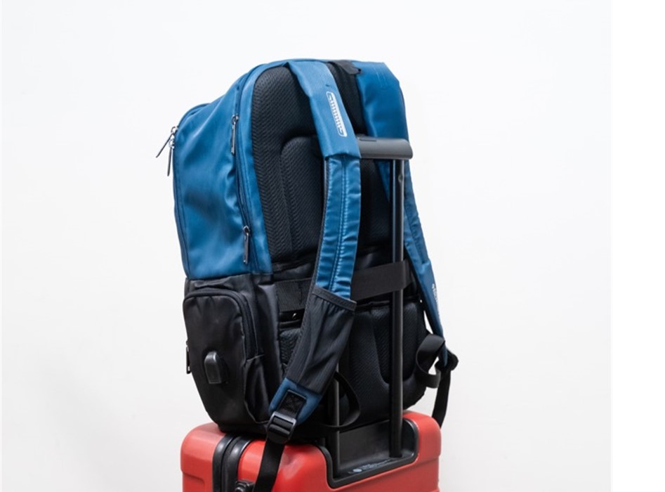 其實 SEGNO 後背包還有很多有趣的收納空間,真的很值得大家自己體會看看,基本上所有你想帶出門的東西,都可以找到最適合放置在背包中最佳位置,不過除了放置東西用的空間滿滿之外,想要把 SEGNO 穩當固定在行李上也沒問題,背墊上的行李袖套就能完美達成這項需求。
