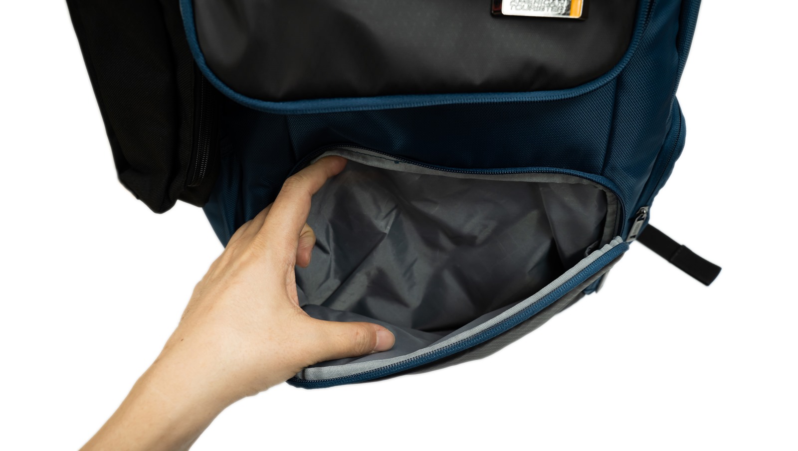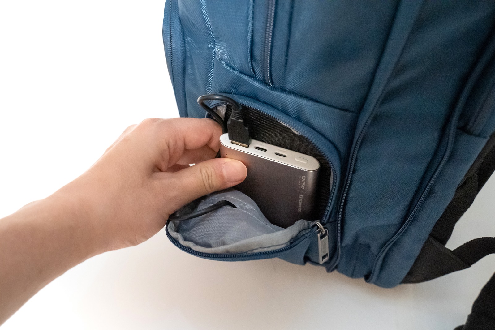不過或許有些人會誤會背包本人可以充電,但不是喔!畢竟這樣可能會讓背包無法託運,所以暫且不做這種設計,SEGNO 設計了一個隔間專門放置行動電源,這是進可攻、退可守的巧思,如果沒有充電必要可以不放減輕負重,但如果真的有用電需求,那個小空間可以放兩個行動電源都沒問題。
