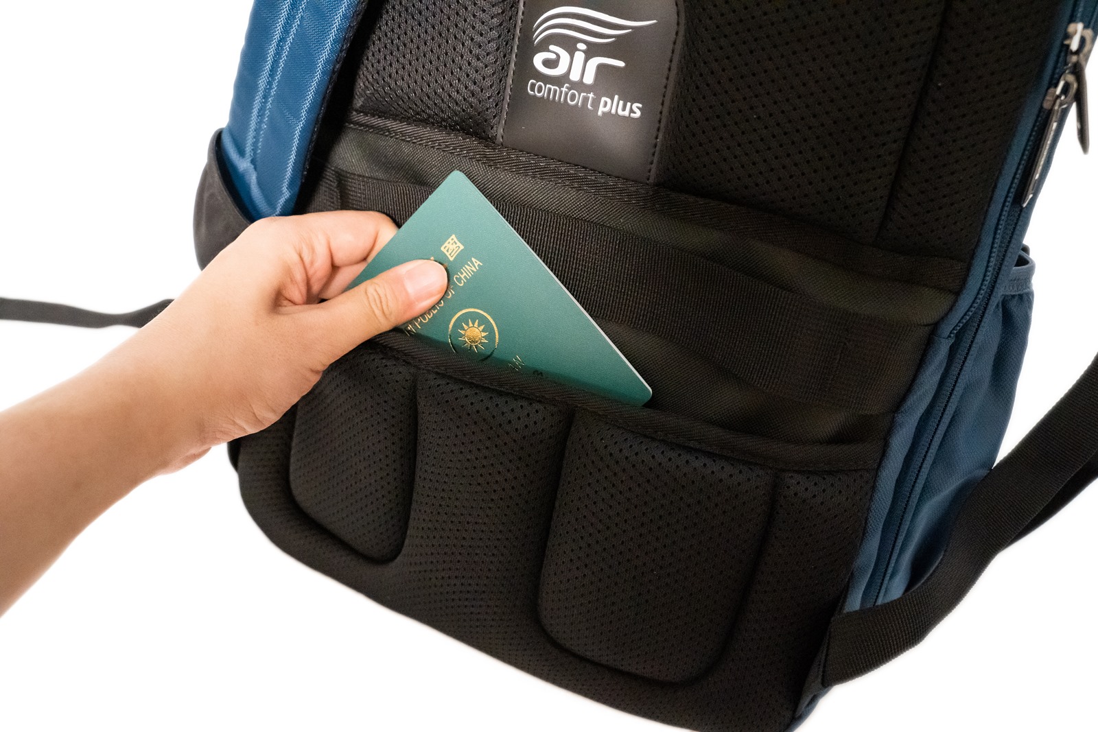 這個位置因為緊貼著使用者的背部,形狀又很扁長,大大增加了竊盜的難度,所以很適合放置需要貼身妥善收藏的貴重物品,像是護照、鈔票等等。