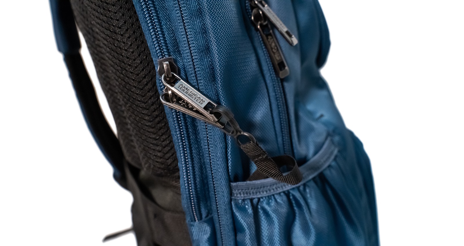 不只是背包大體上目光可視的部份做得講究,連許多小細節也一樣讓人驚艷,像是拉鍊,特規的長形拉鍊滑順好拉,還有鑿出方形孔洞方便上鎖,並且相當有質感,不是一般公版拉鍊。