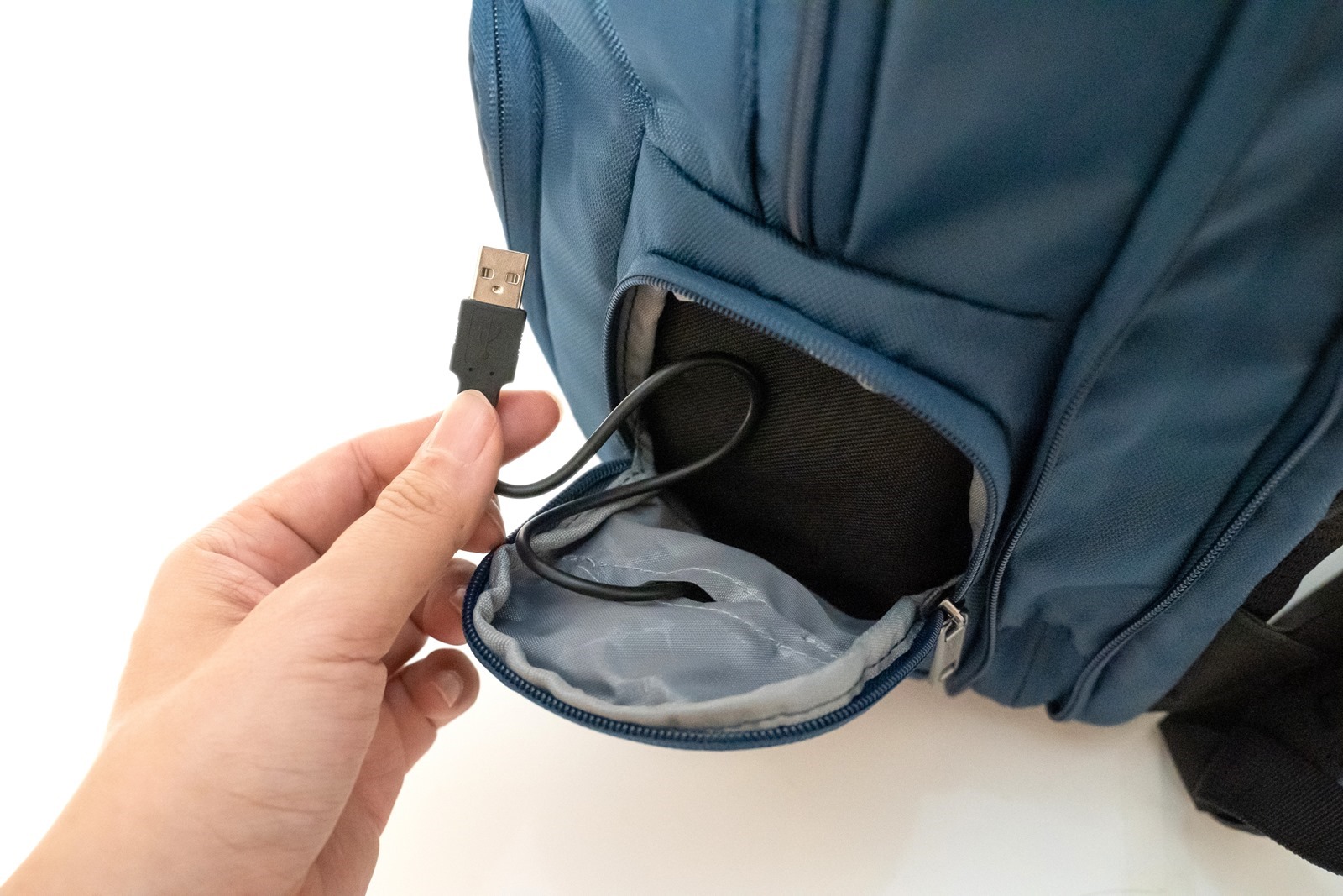 一直以來阿輝都覺得包包理應有這個設計,沒有做這種開口的包包實在不能算是思慮周全,為了全方位的替消費者思考,SEGNO 不只是有個開口,還做了相當漂亮的 USB 插孔,從顏色到造型都很符合整體設計,到家懶得拿出行動電源充電或是一下找不到豆腐頭,也可以直接連接背包裡的行動電源充電。