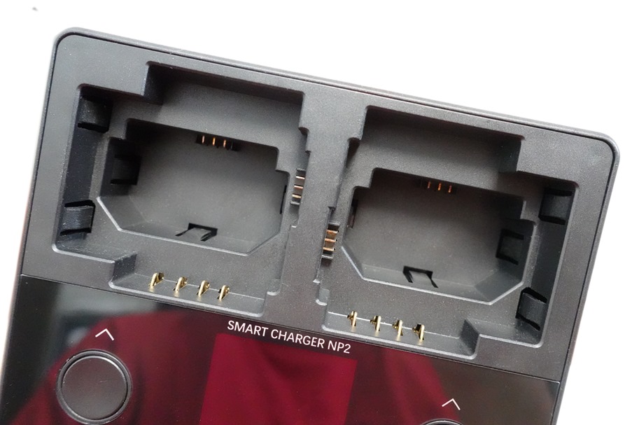 特別的雙電池槽設計,其 專利堆疊式電池槽設計,配合雙路獨立充電通道可以任選兩顆電池同時充電,支援 Sony BX1/FZ100/FW50 三種電池規格