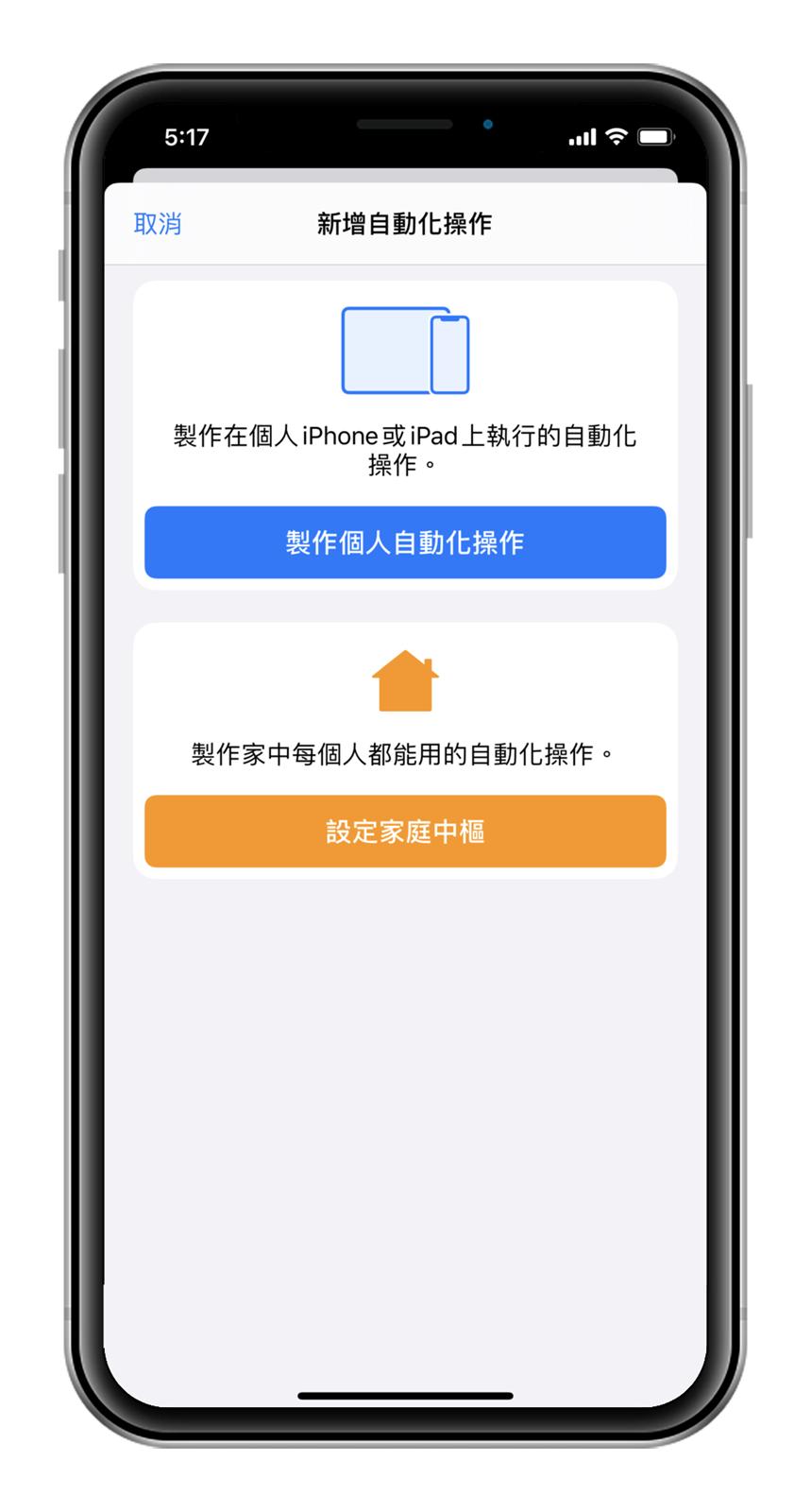 一樣到『捷徑』程式中,不同的是我們要做的選擇下面標籤的『自動化』項目,然後點選右上角的新增按鈕
