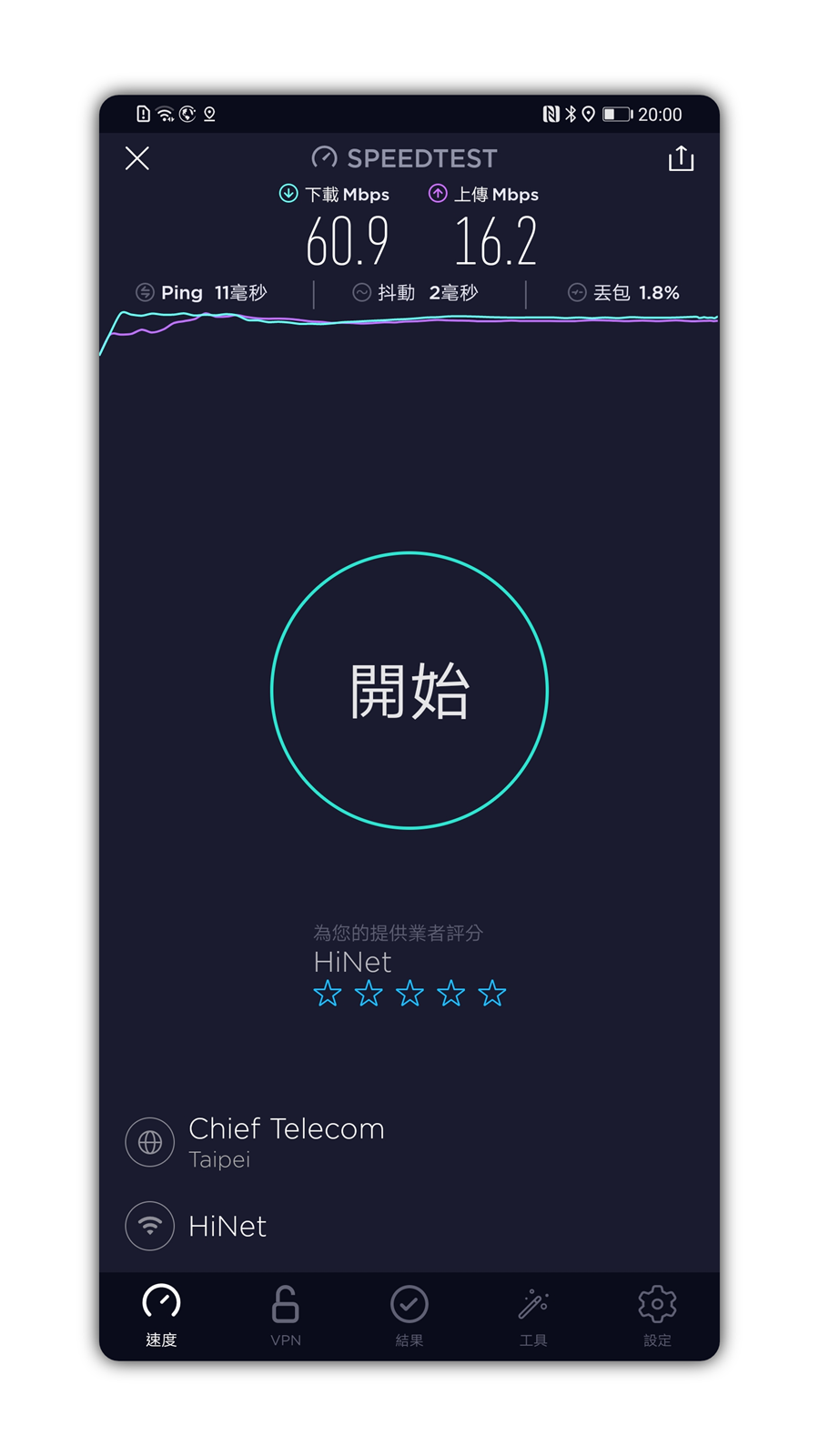測試點 B 的攝影棚速度馬上有感提昇到了 70/21Mbps!