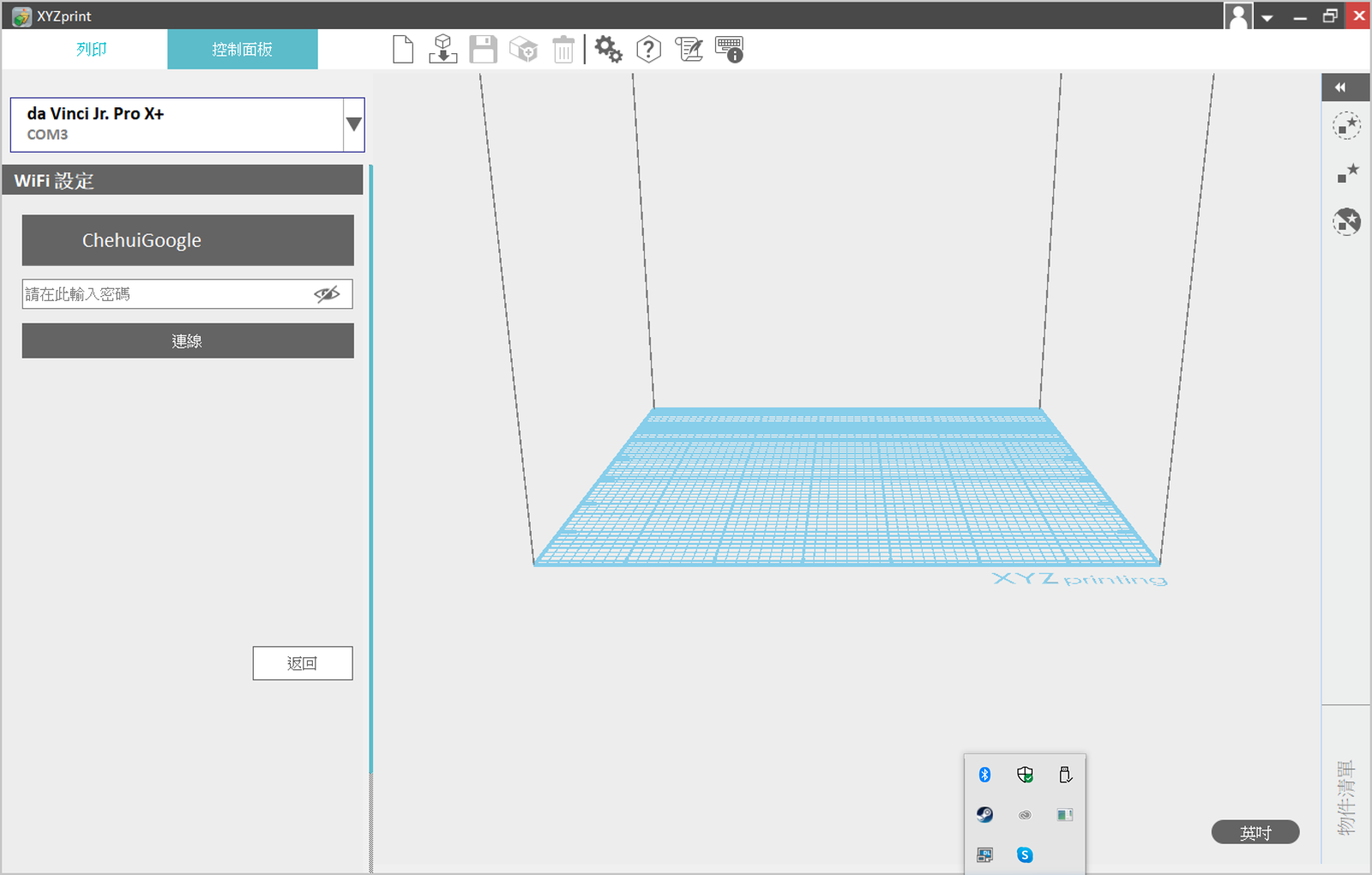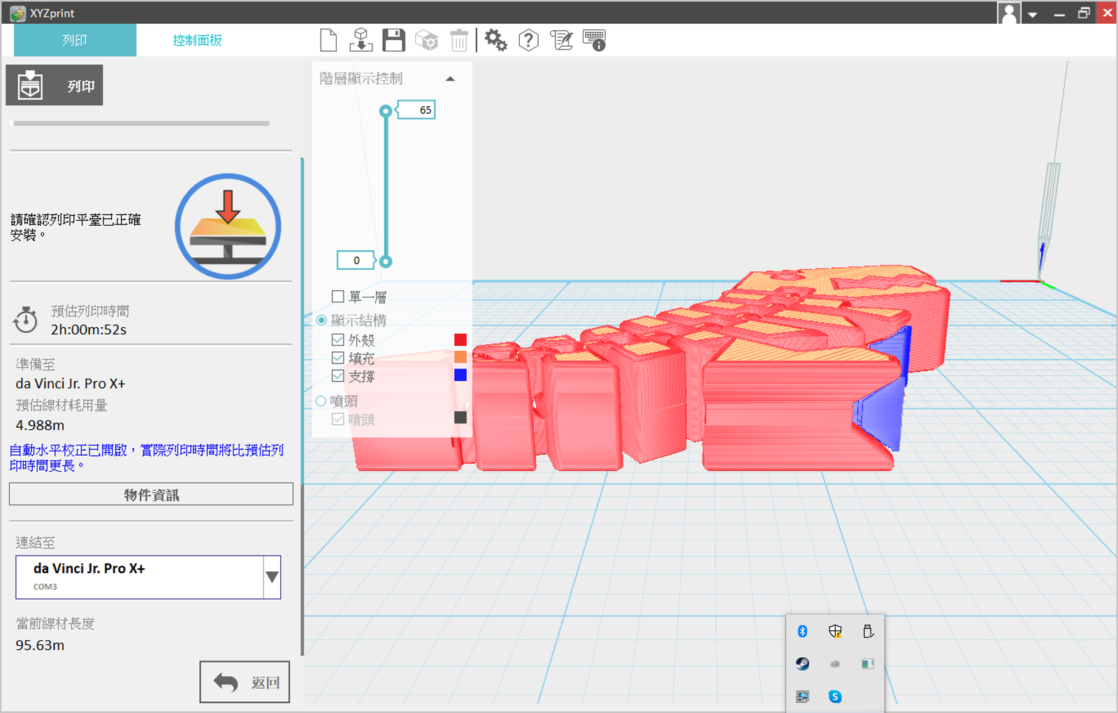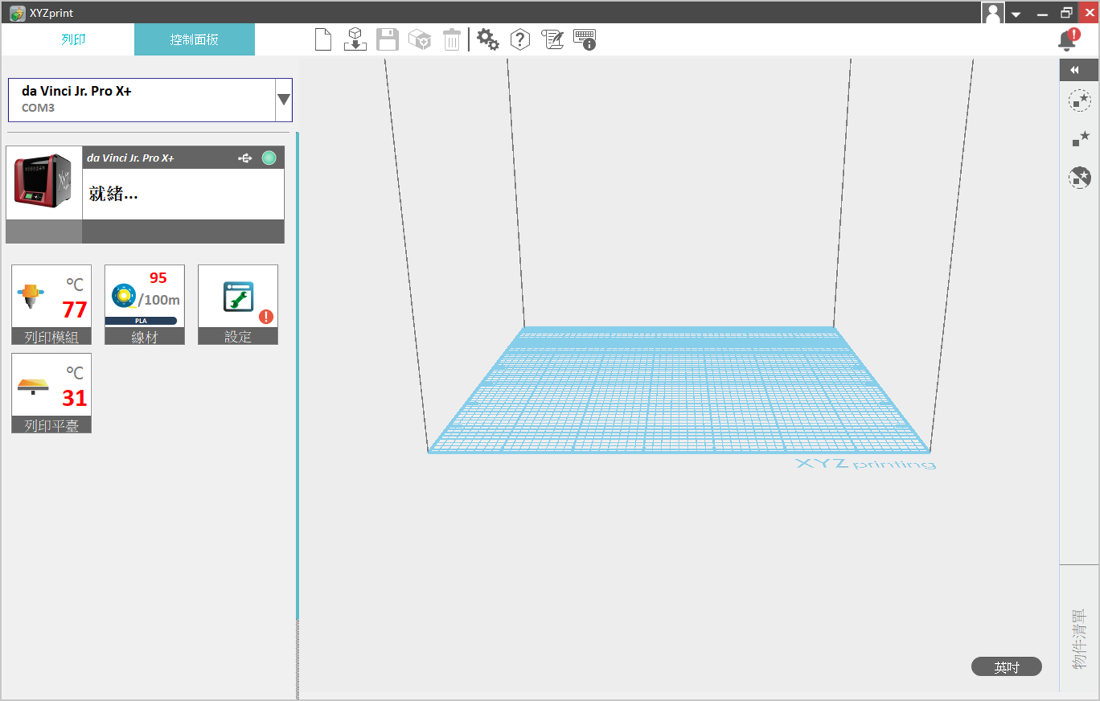 使用 USB 連接 da Vinci Jr. Pro X+ 之後可以得到完整的連線與使用功能,使用原廠線材的話就可以顯示目前的線材剩餘長度。