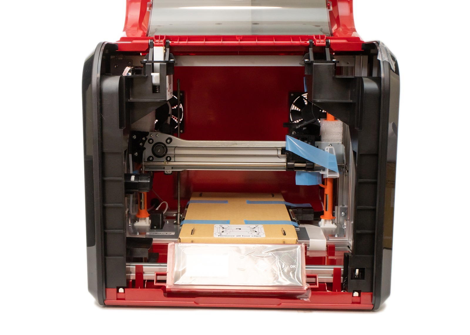 首先拆箱後撕開機構、列印板上的固定膠帶