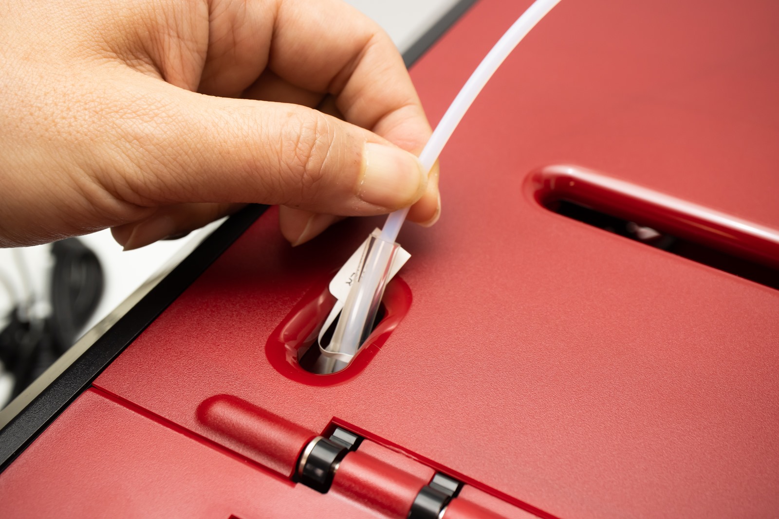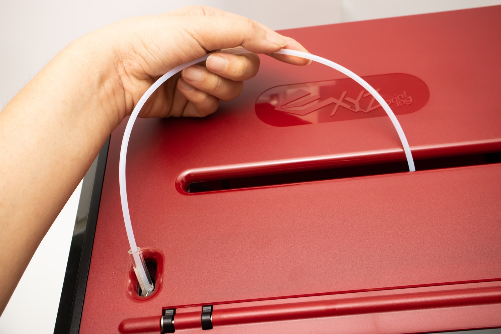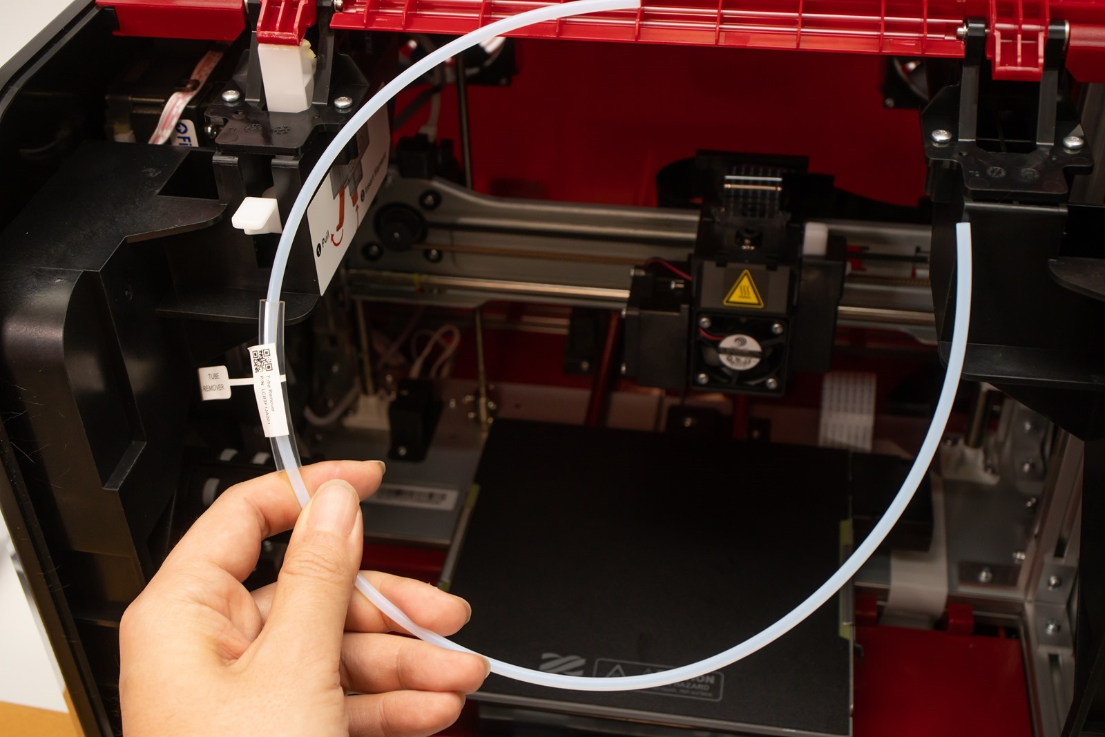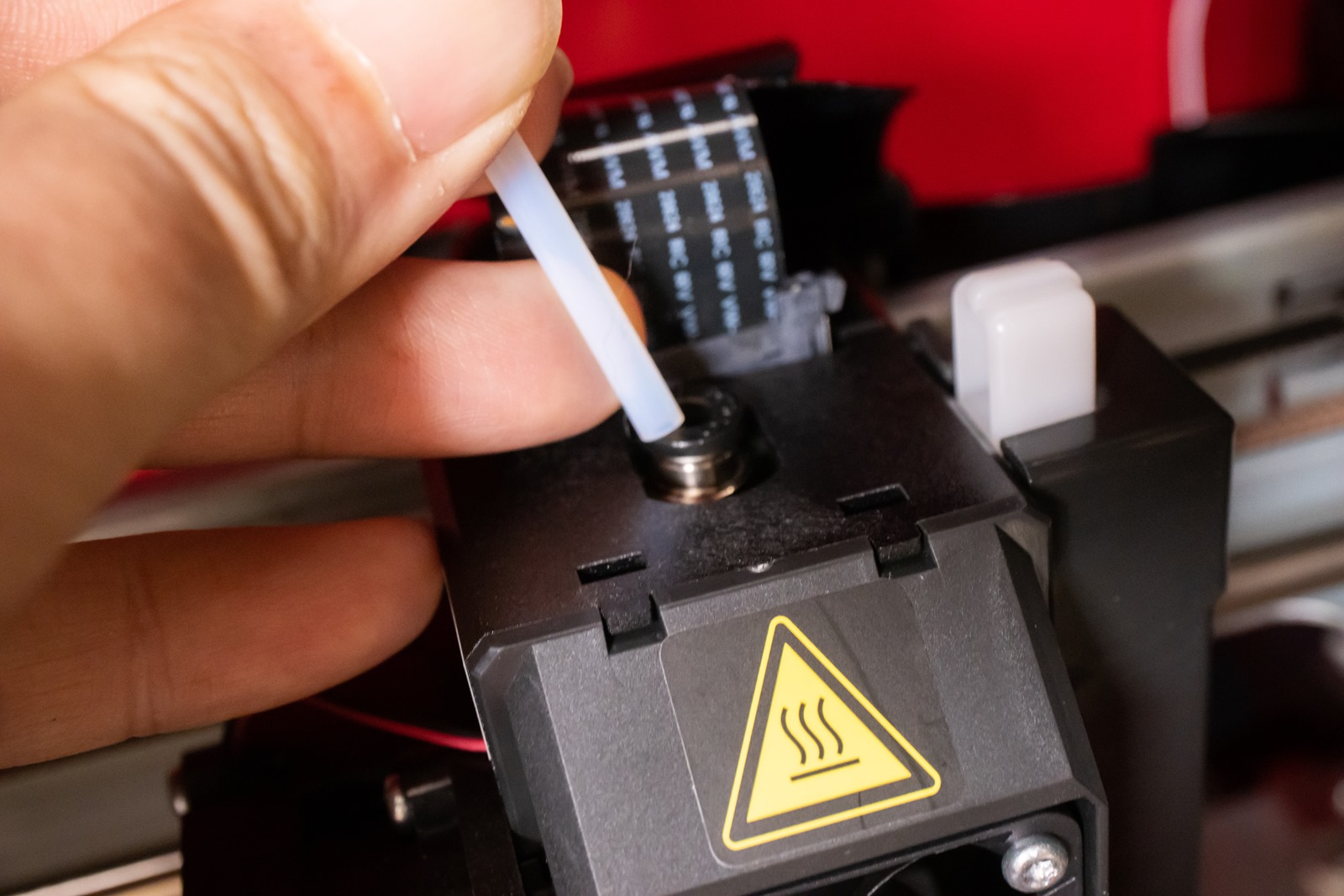 前端則與機器內部左前方的擠出機連接,插到底就會自己卡住