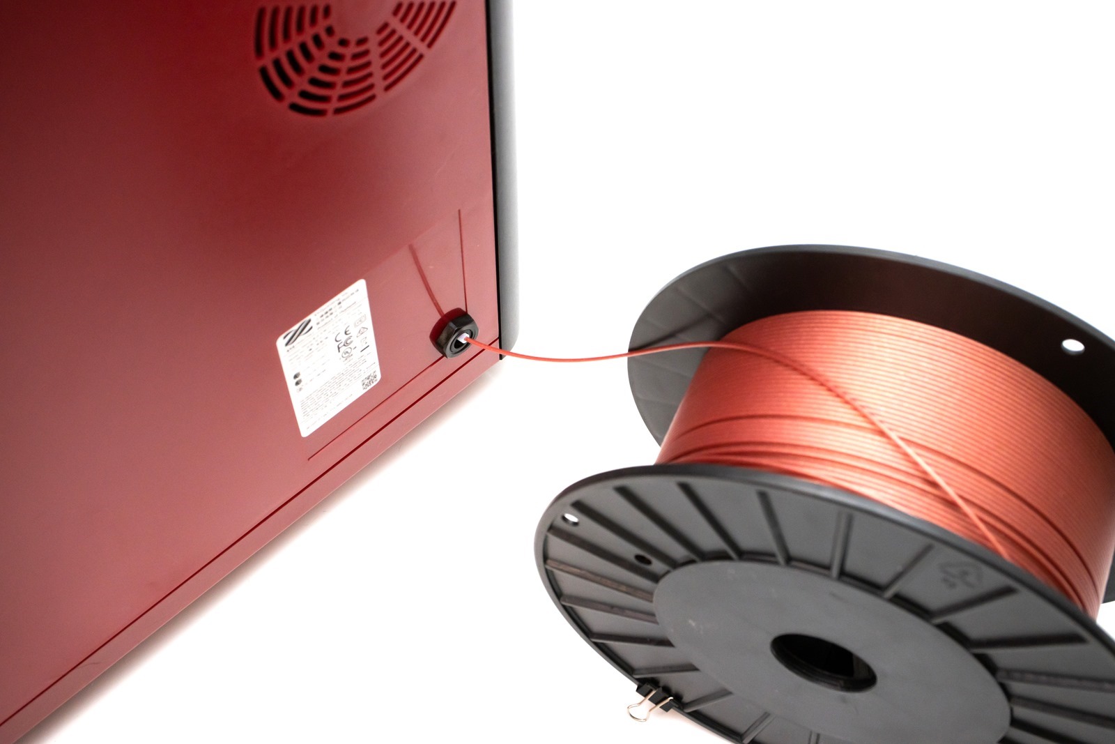 因為原廠在機體內的線材置放空間是固定的,若是較大的第三方線材卷,也可以選擇從後方的進料口進線。