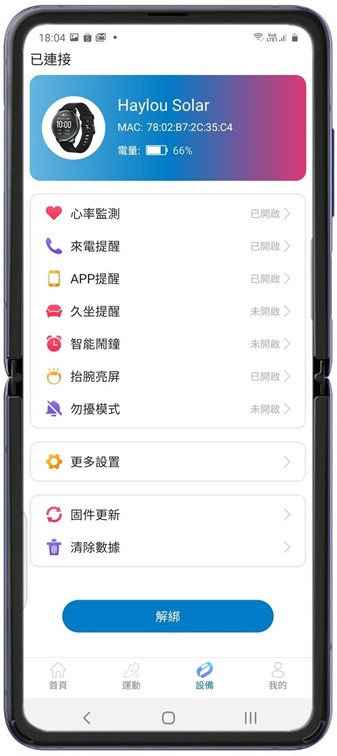 Haylou Solar 智慧手錶觸控為主的操作蠻直覺的,螢幕左右滑動即可切換常用項目,向上滑動可以選擇各項操作功能(程式),向下滑動則是快捷操作,硬體的錶冠按鈕可以在任何程式中按一下返回錶面,再按一次關閉螢幕,喚醒手錶擇可以直接按錶冠喚醒,也支援抬手動作自動喚醒,使用十分直覺!