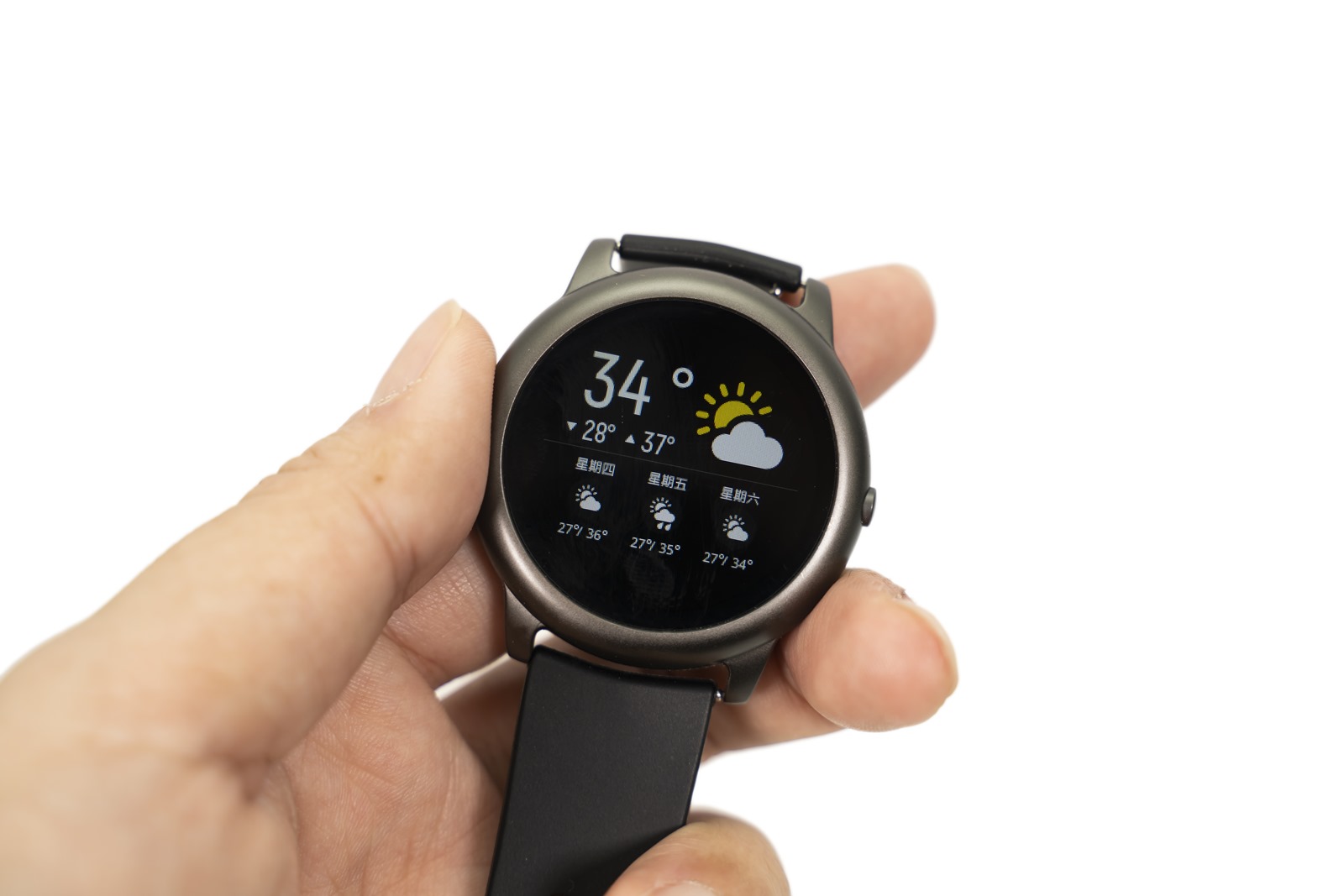 拿出主角 Haylou Solar 智慧手錶,採用的是圓形 1.28 吋的 TFT 螢幕,老實說解析度是稍微低的 240 x 240,不過還是一碼歸一碼不論事內室外觀看都十分清晰,手錶表面也是採用觸控玻璃。