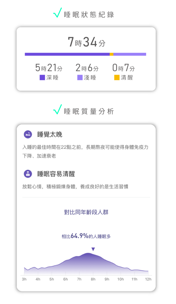 除了運動紀錄,Haylou Solar 智慧手錶也支援睡眠品質監控,透過大數據分析,只要戴著 Haylou Solar 智慧手錶睡覺就會自動偵測用戶的睡眠狀態並分析睡眠品質提供參考。